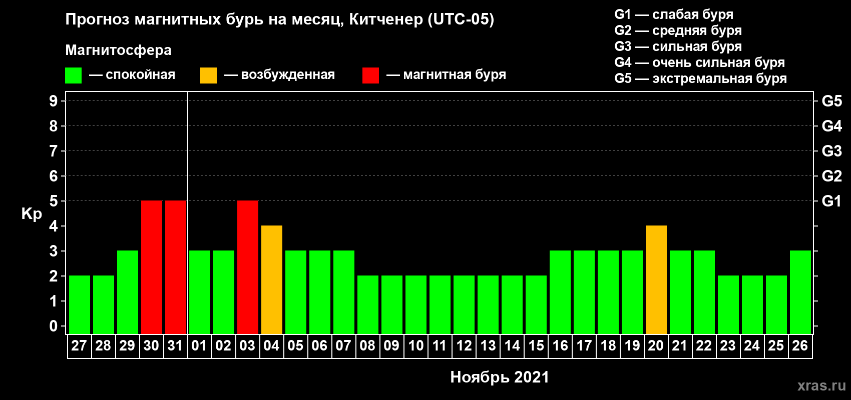Прогноз магнитных бурь в Китченере — 27 октября 2021 года