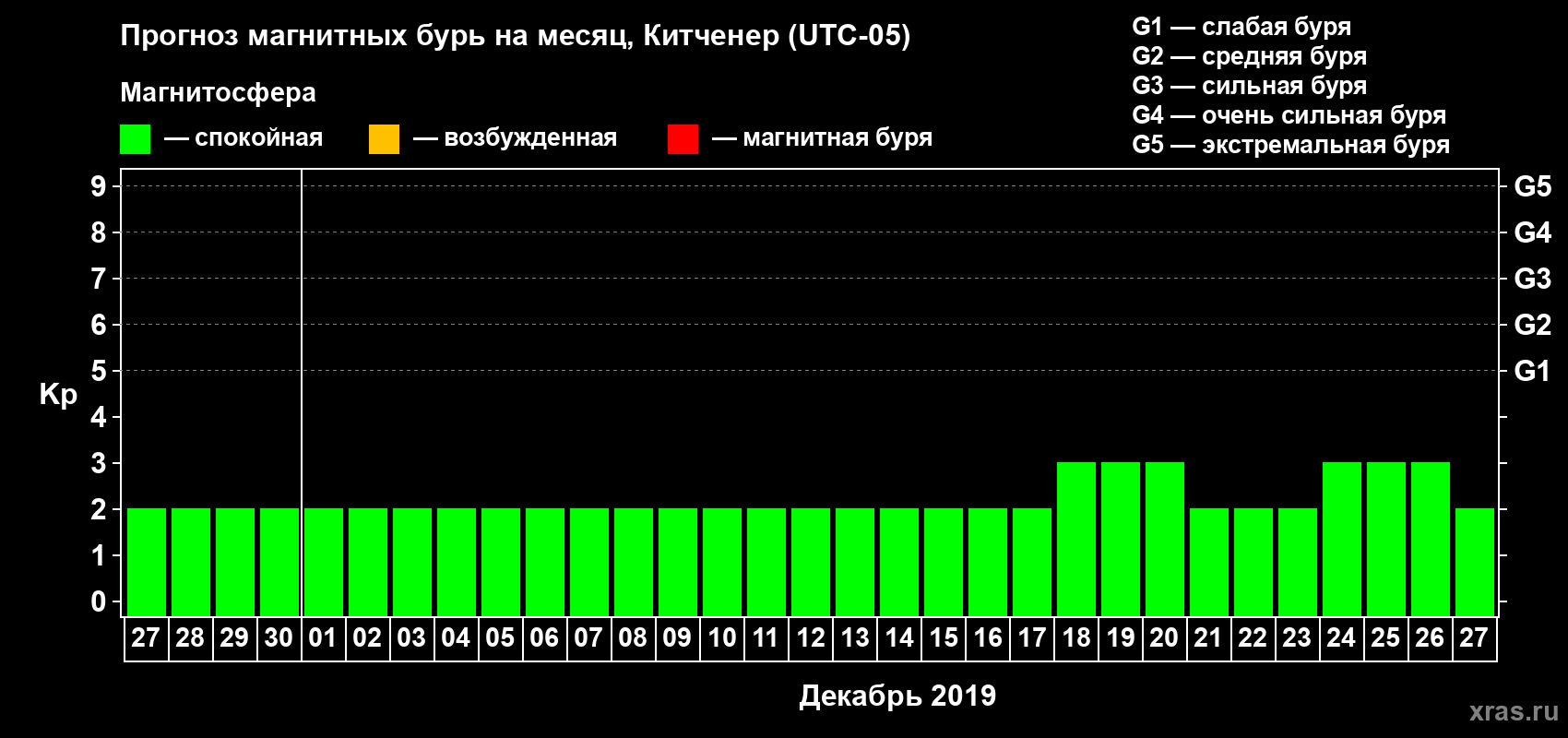 Прогноз магнитных бурь в Китченере — 27 ноября 2019 года
