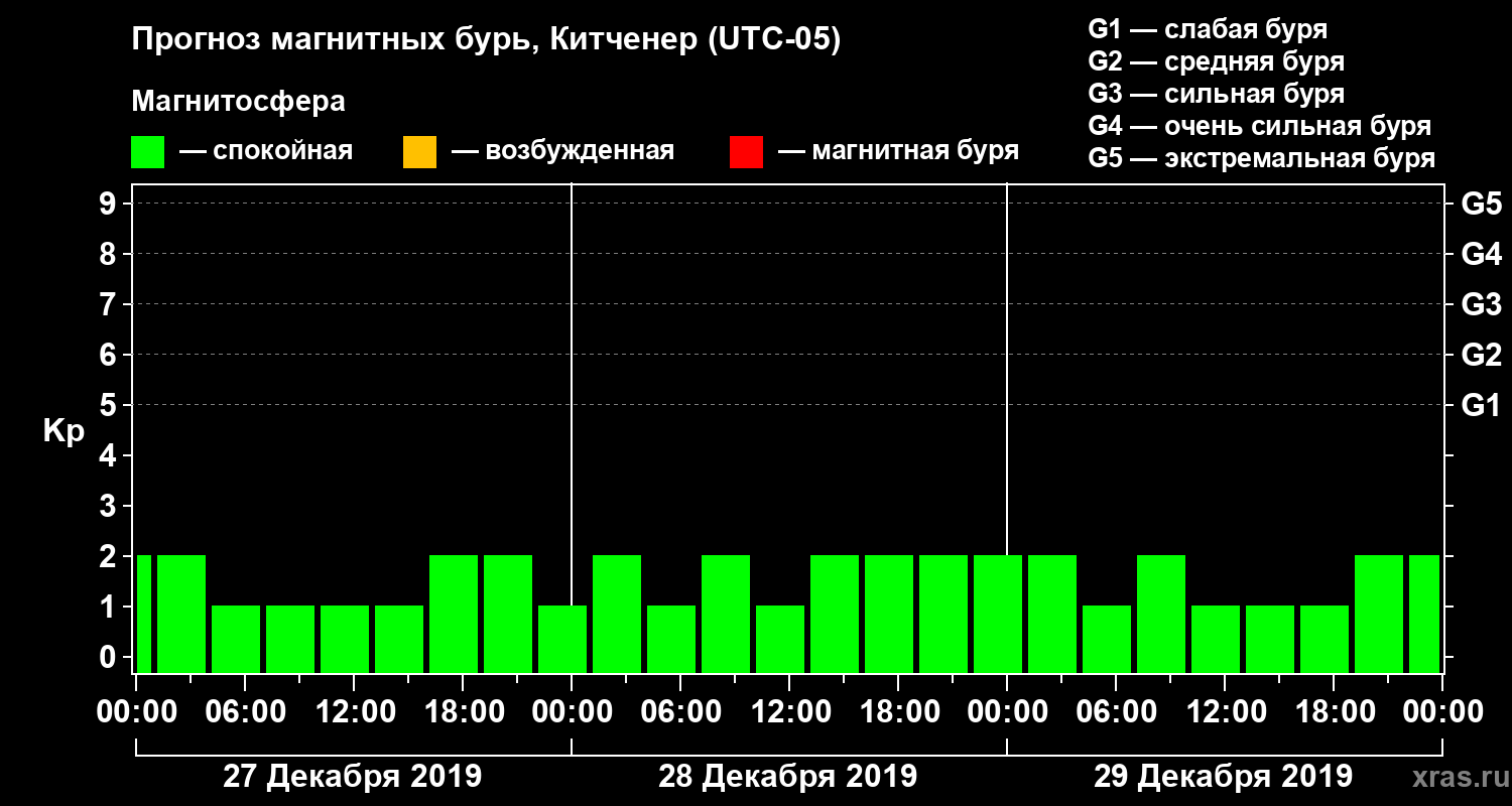 Прогноз магнитных бурь в Китченере — 27 декабря 2019 года