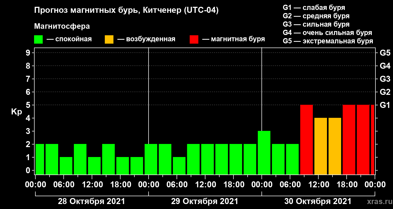 Прогноз магнитных бурь в Китченере — 28 октября 2021 года