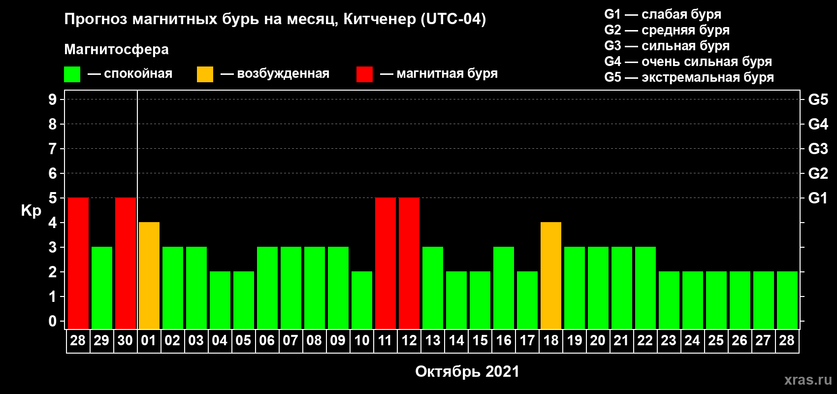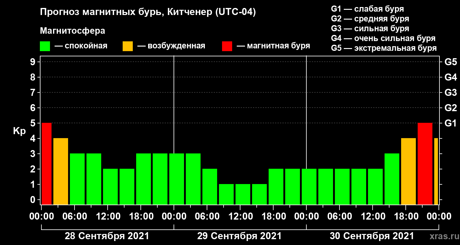 Прогноз магнитных бурь в Китченере — 28 сентября 2021 года