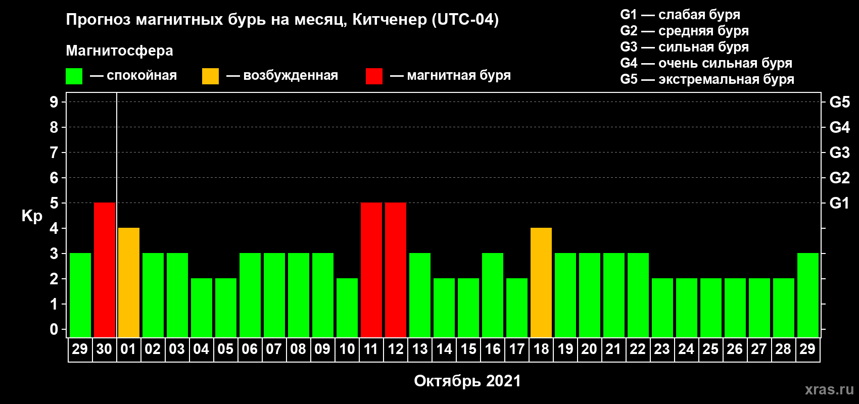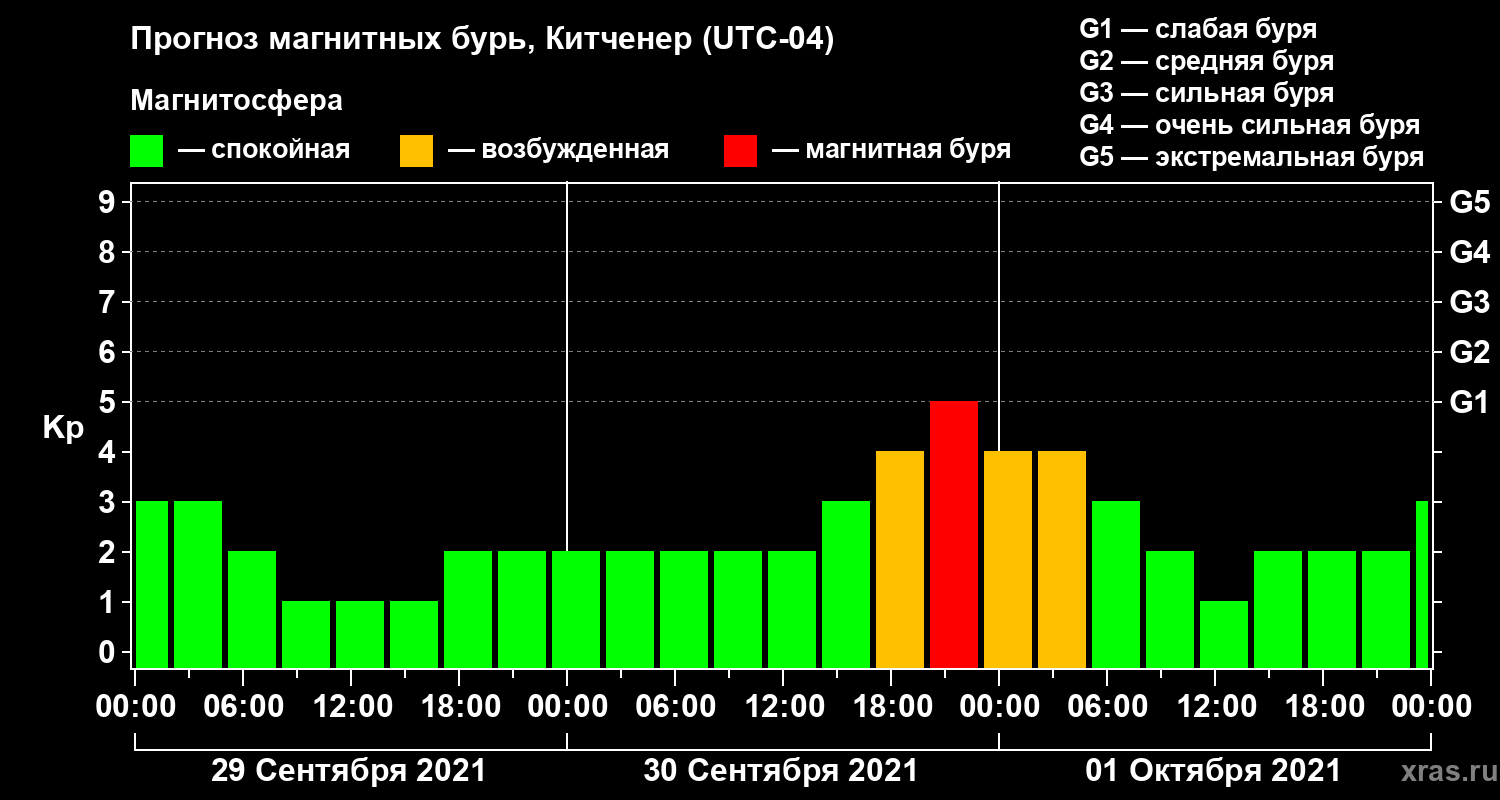 Прогноз магнитных бурь в Китченере — 29 сентября 2021 года
