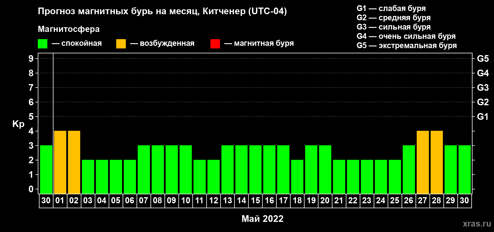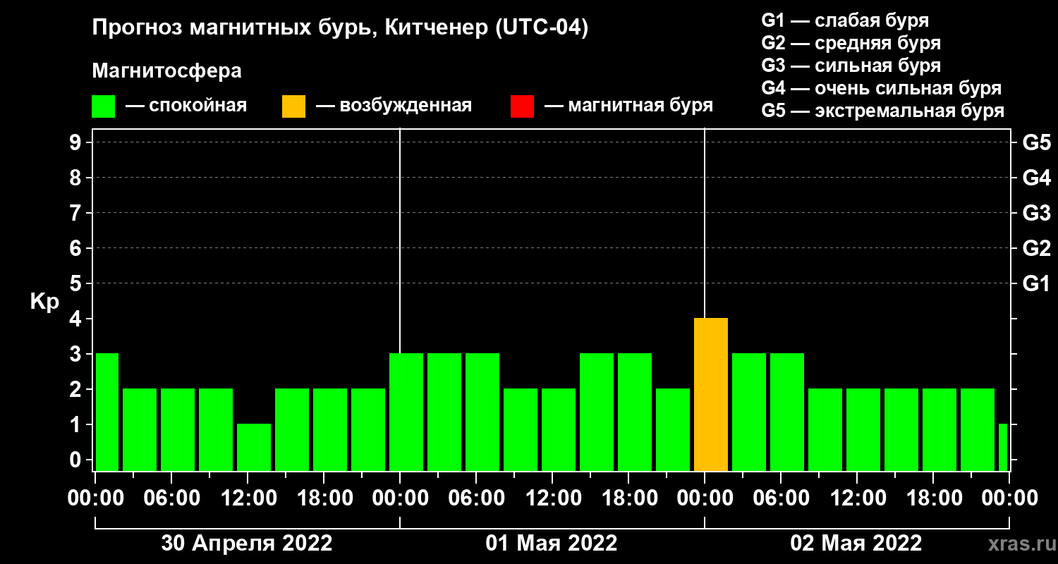 Прогноз магнитных бурь в Китченере на 30 апреля 2022 года