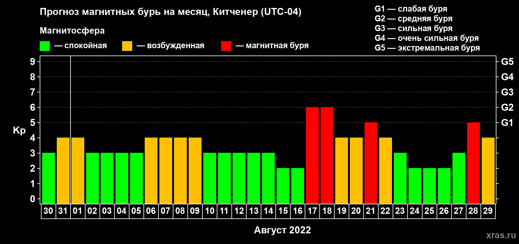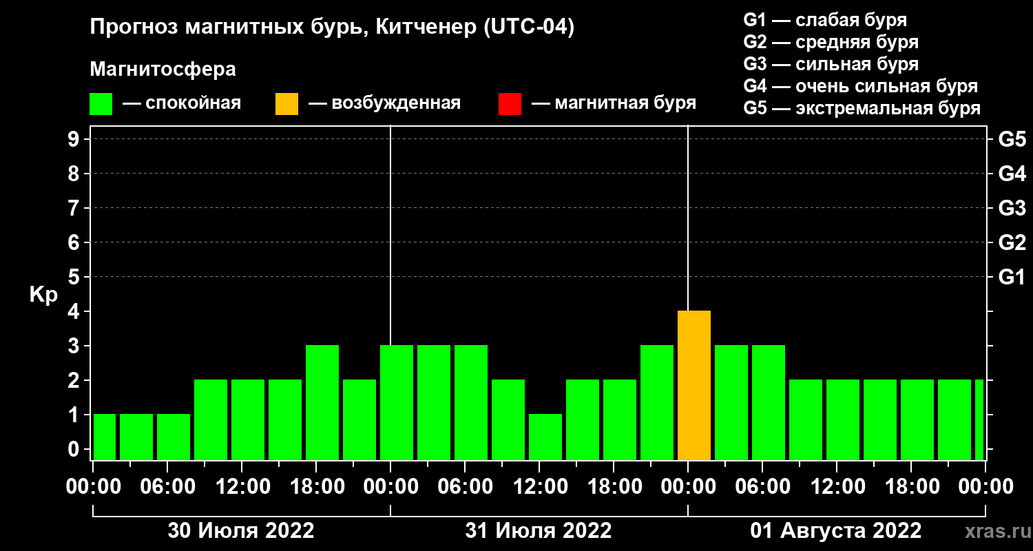 Прогноз магнитных бурь в Китченере — 30 июля 2022 года