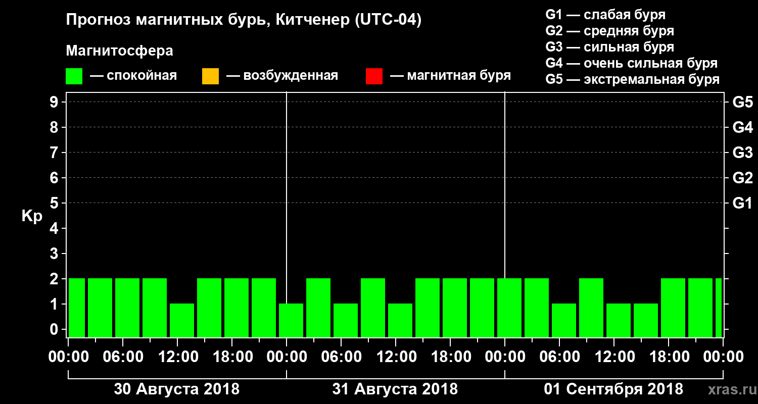 Прогноз магнитных бурь в Китченере на 30 августа 2018 года