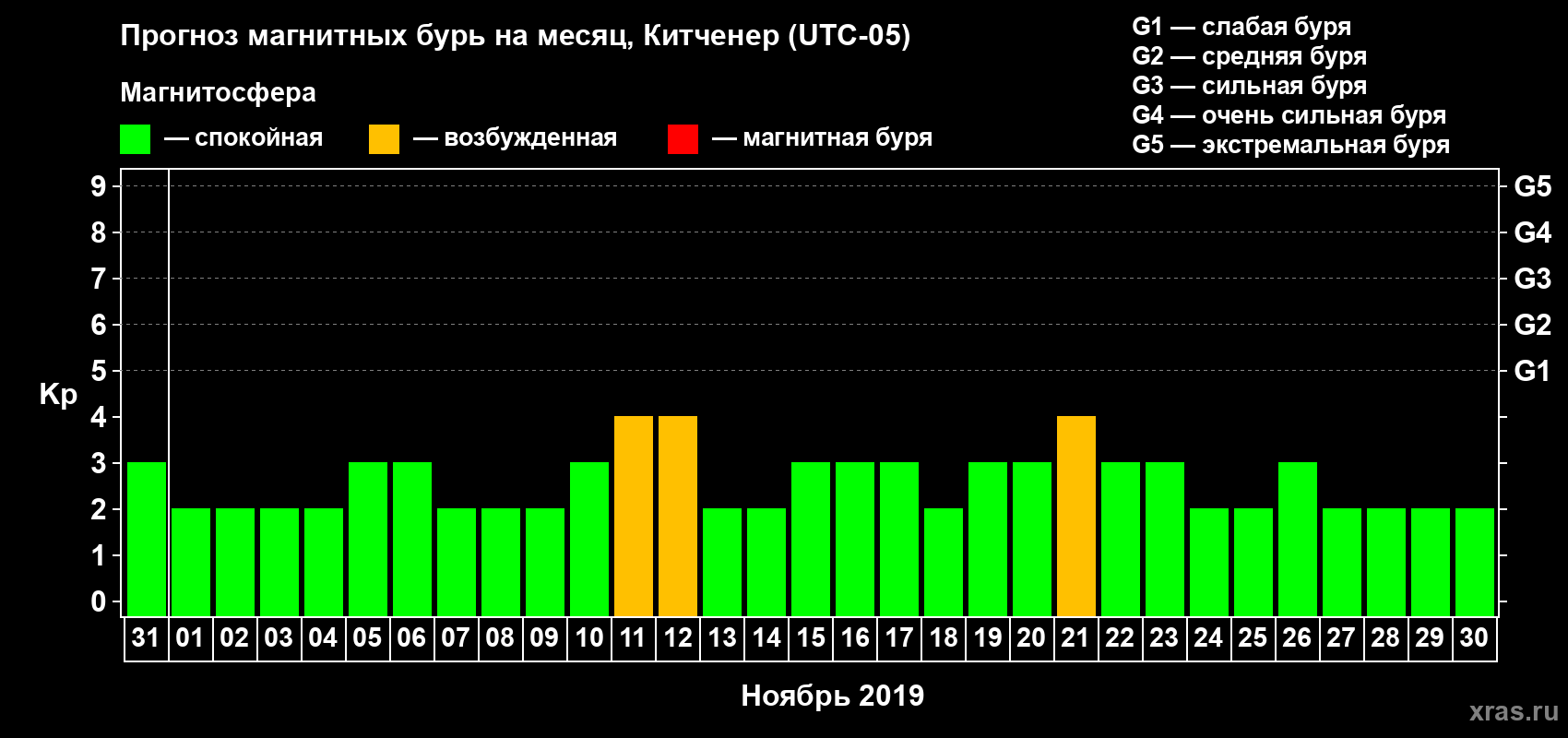 Прогноз магнитных бурь в Китченере — 31 октября 2019 года