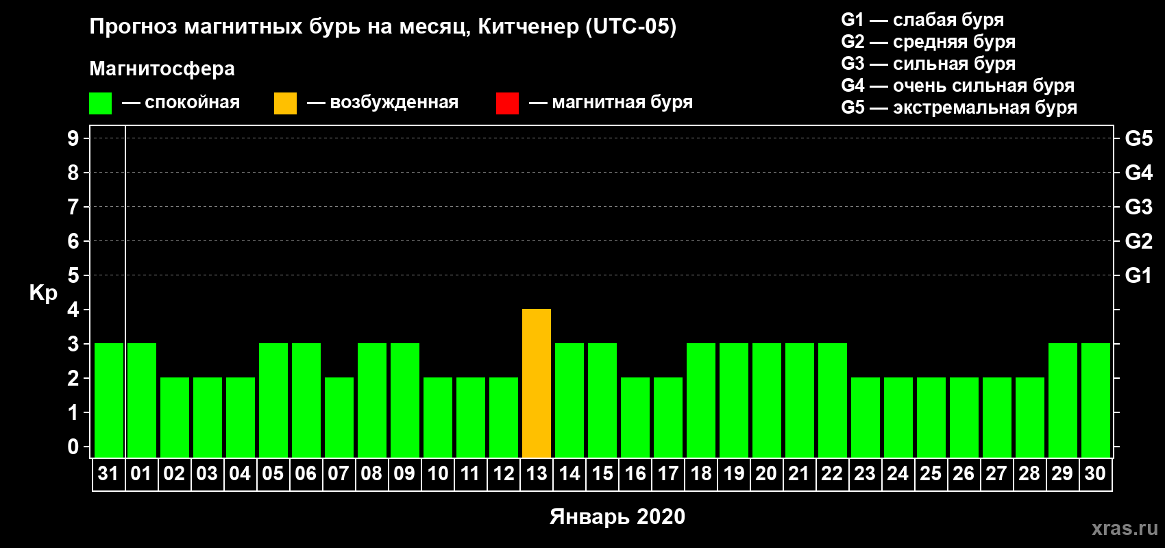 Прогноз магнитных бурь в Китченере — 31 декабря 2019 года