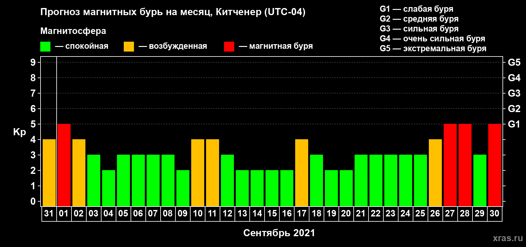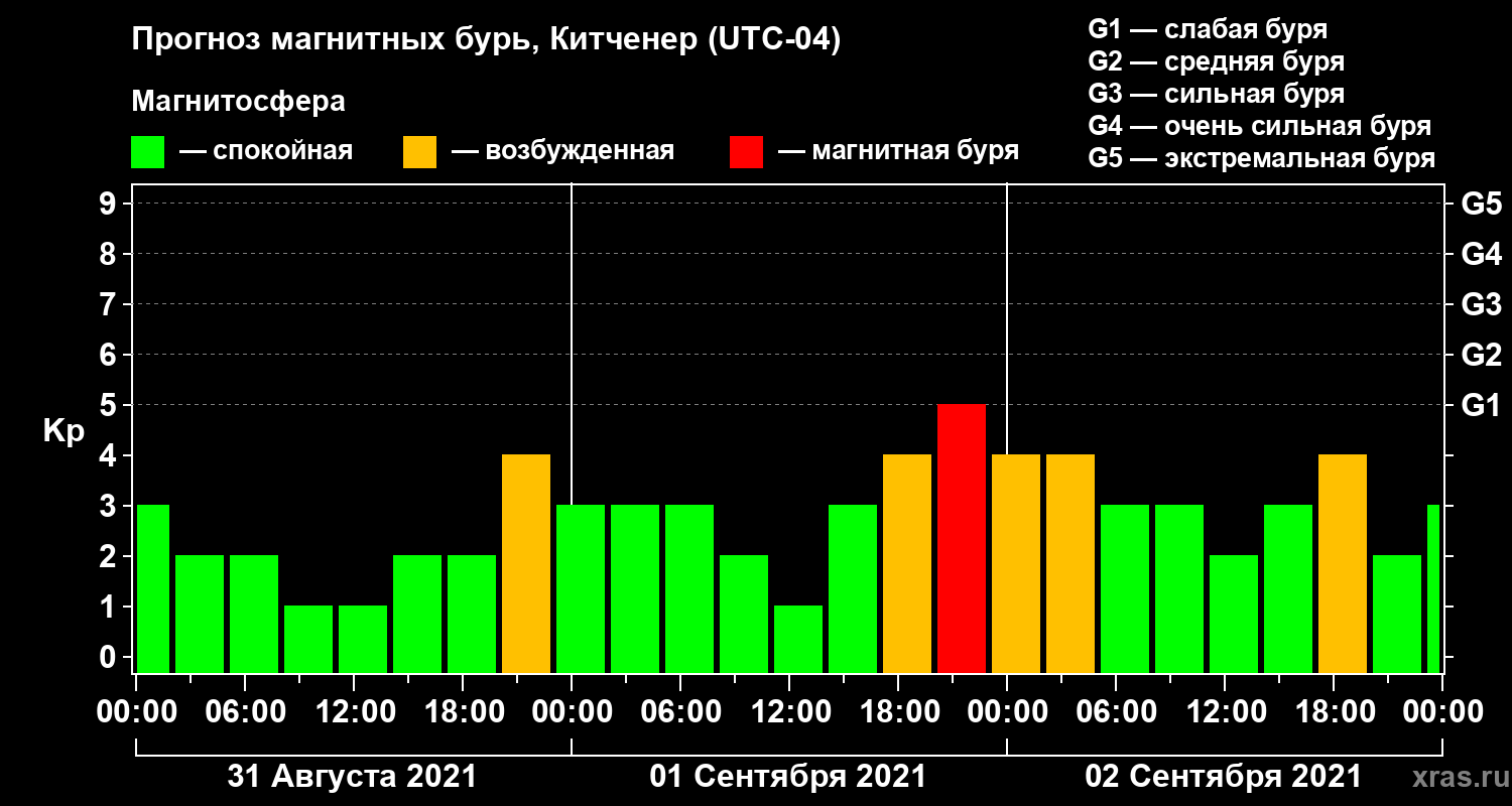 Прогноз магнитных бурь в Китченере — 31 августа 2021 года