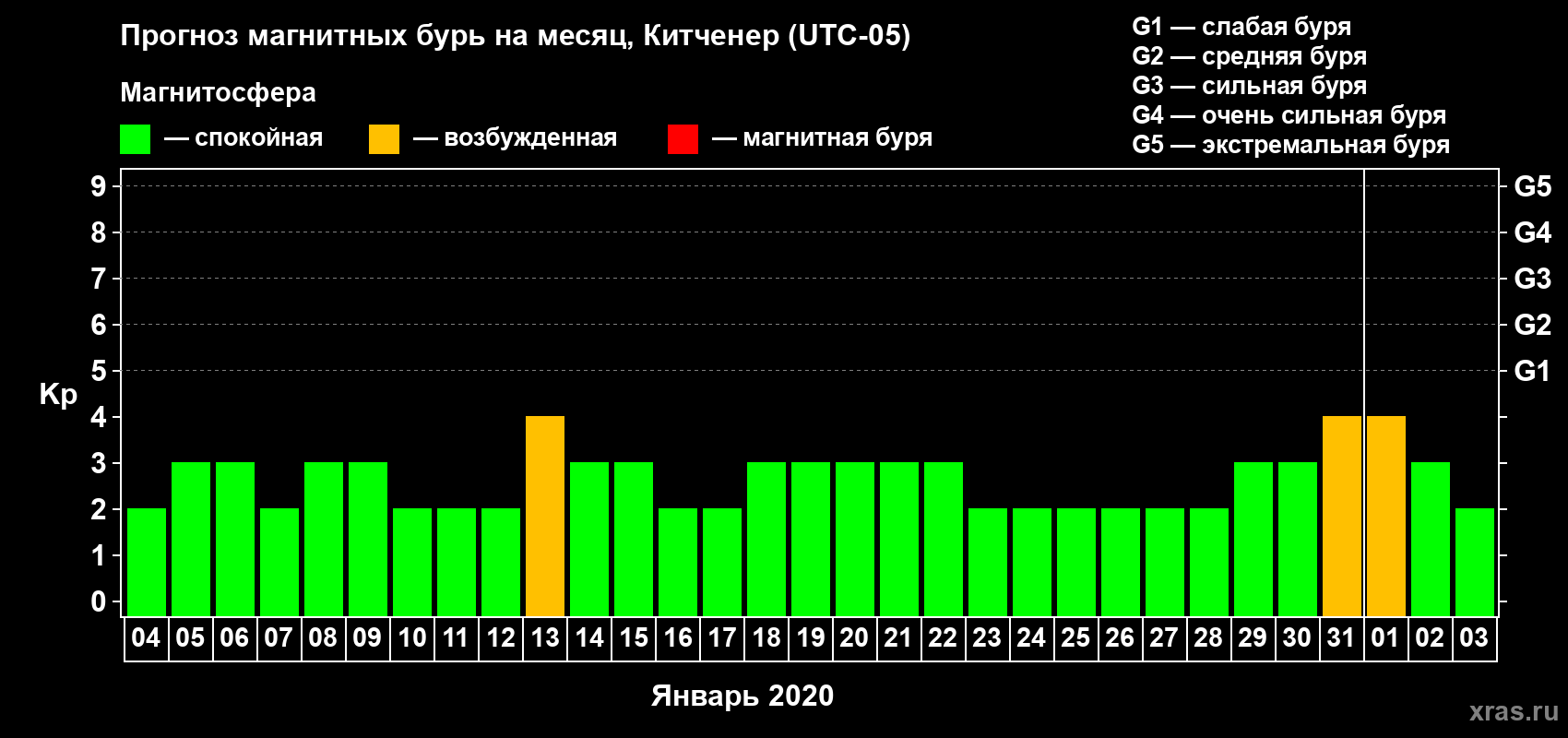 Прогноз магнитных бурь в Китченере — 4 января 2020 года