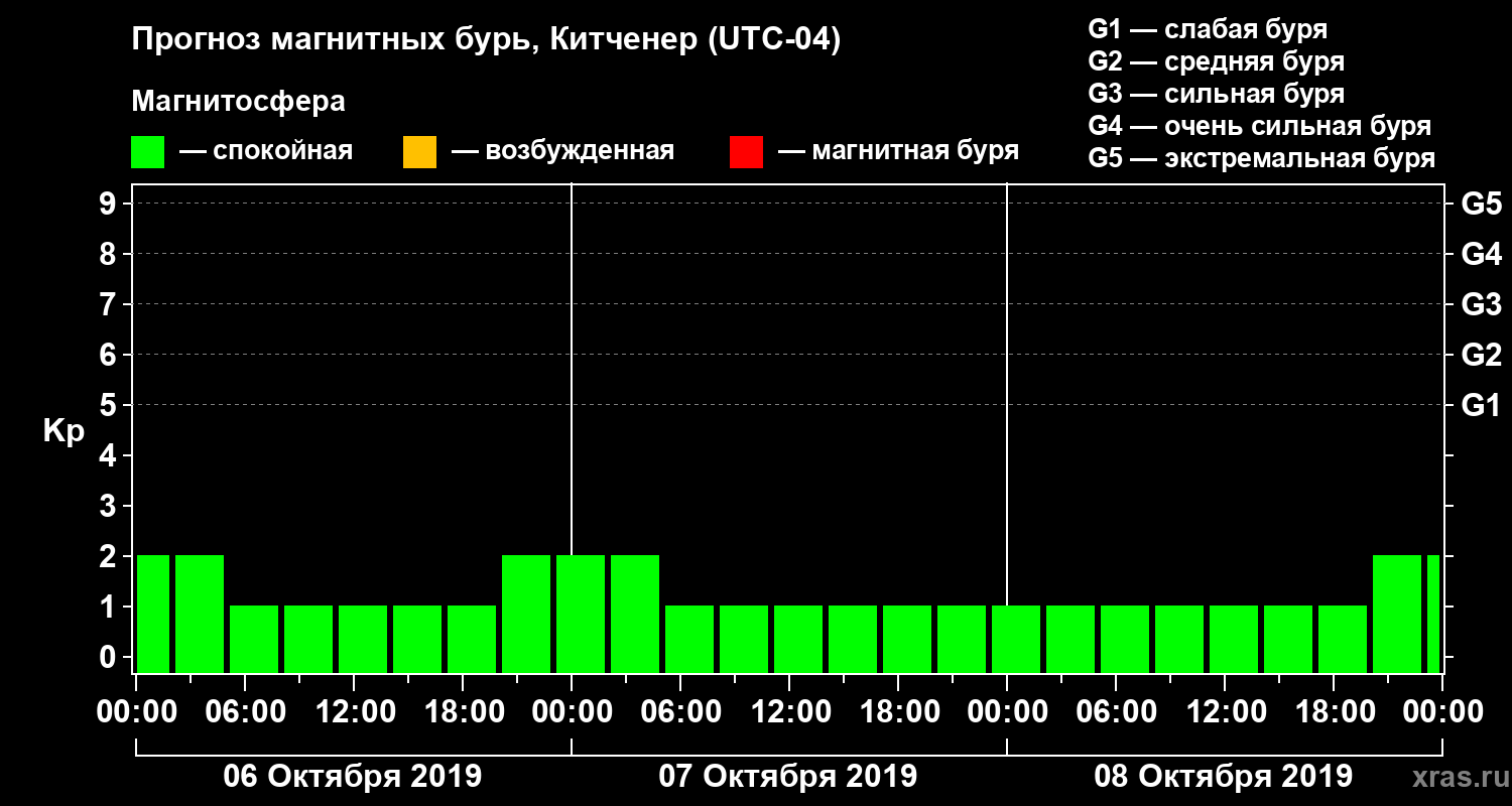 Прогноз магнитных бурь в Китченере — 6 октября 2019 года