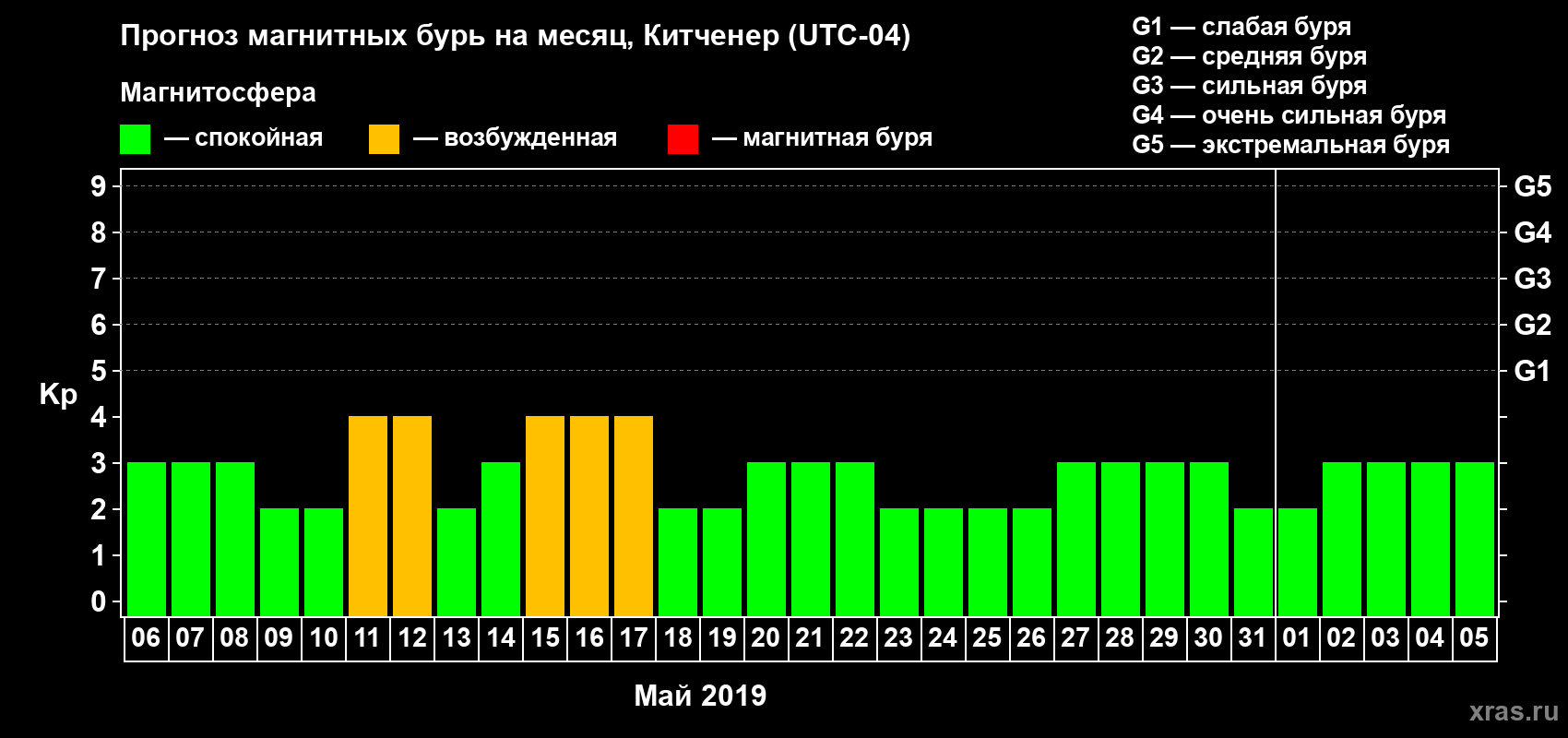 Прогноз магнитных бурь в Китченере — 6 мая 2019 года