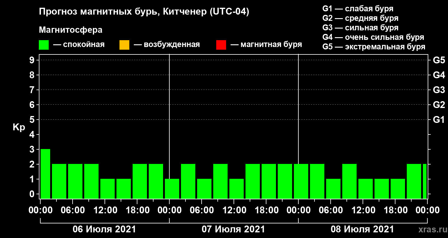 Прогноз магнитных бурь в Китченере — 6 июля 2021 года