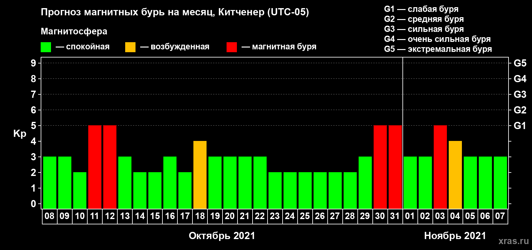Прогноз магнитных бурь в Китченере — 8 октября 2021 года
