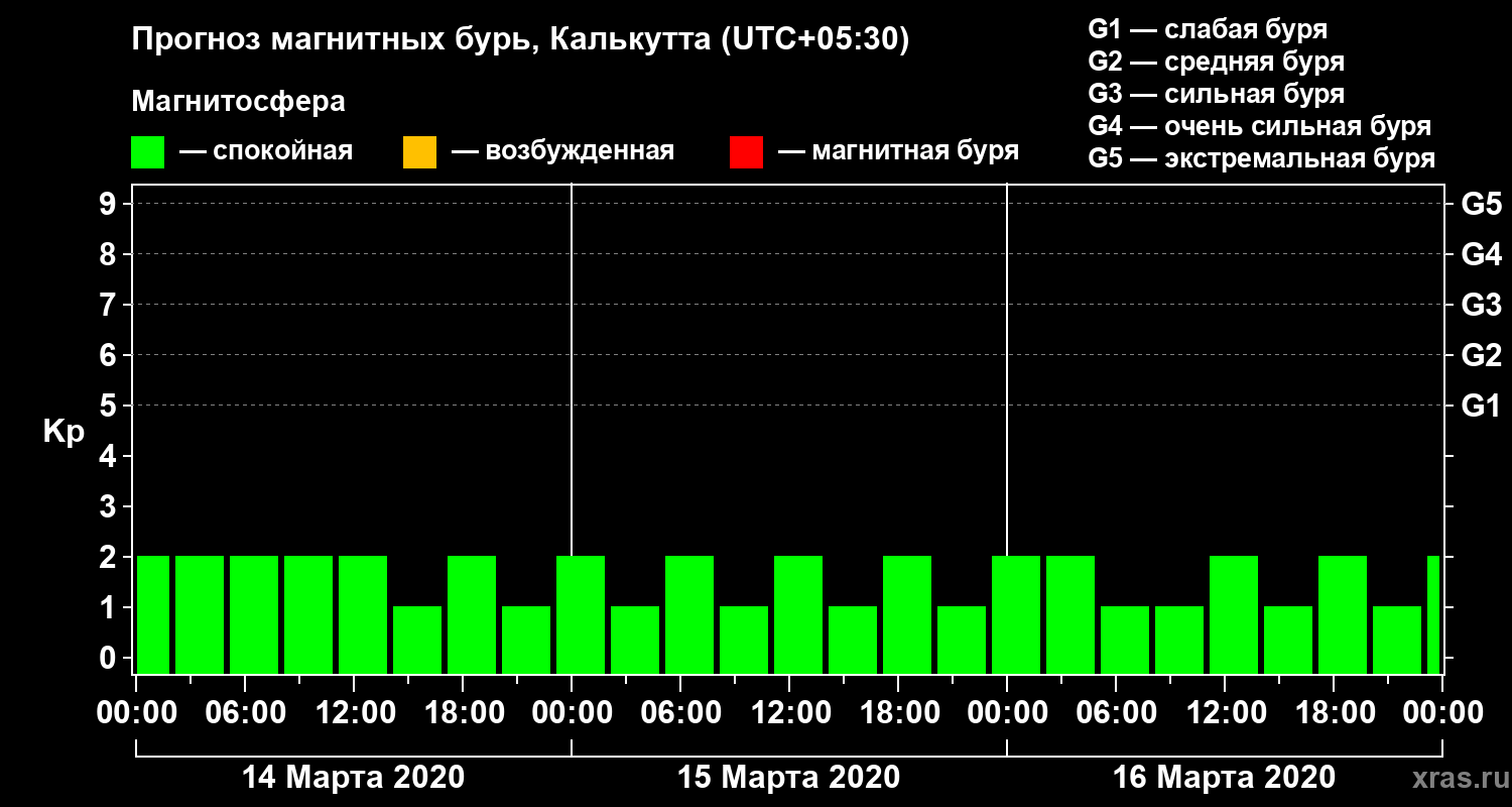 Прогноз магнитных бурь в Калькутте — 14 марта 2020 года