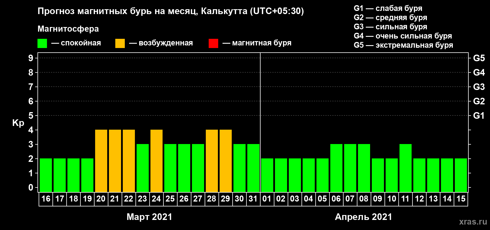 Прогноз магнитных бурь в Калькутте — 16 марта 2021 года
