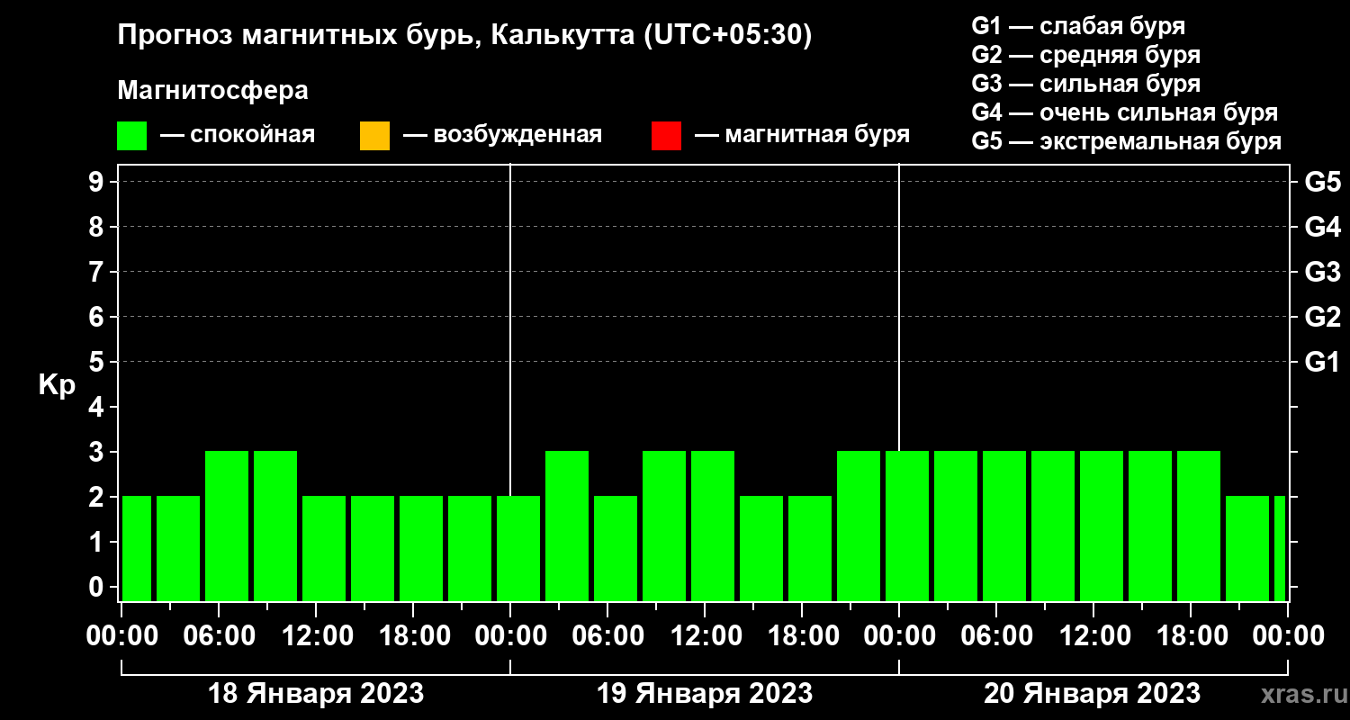 Прогноз магнитных бурь в Калькутте — 18 января 2023 года