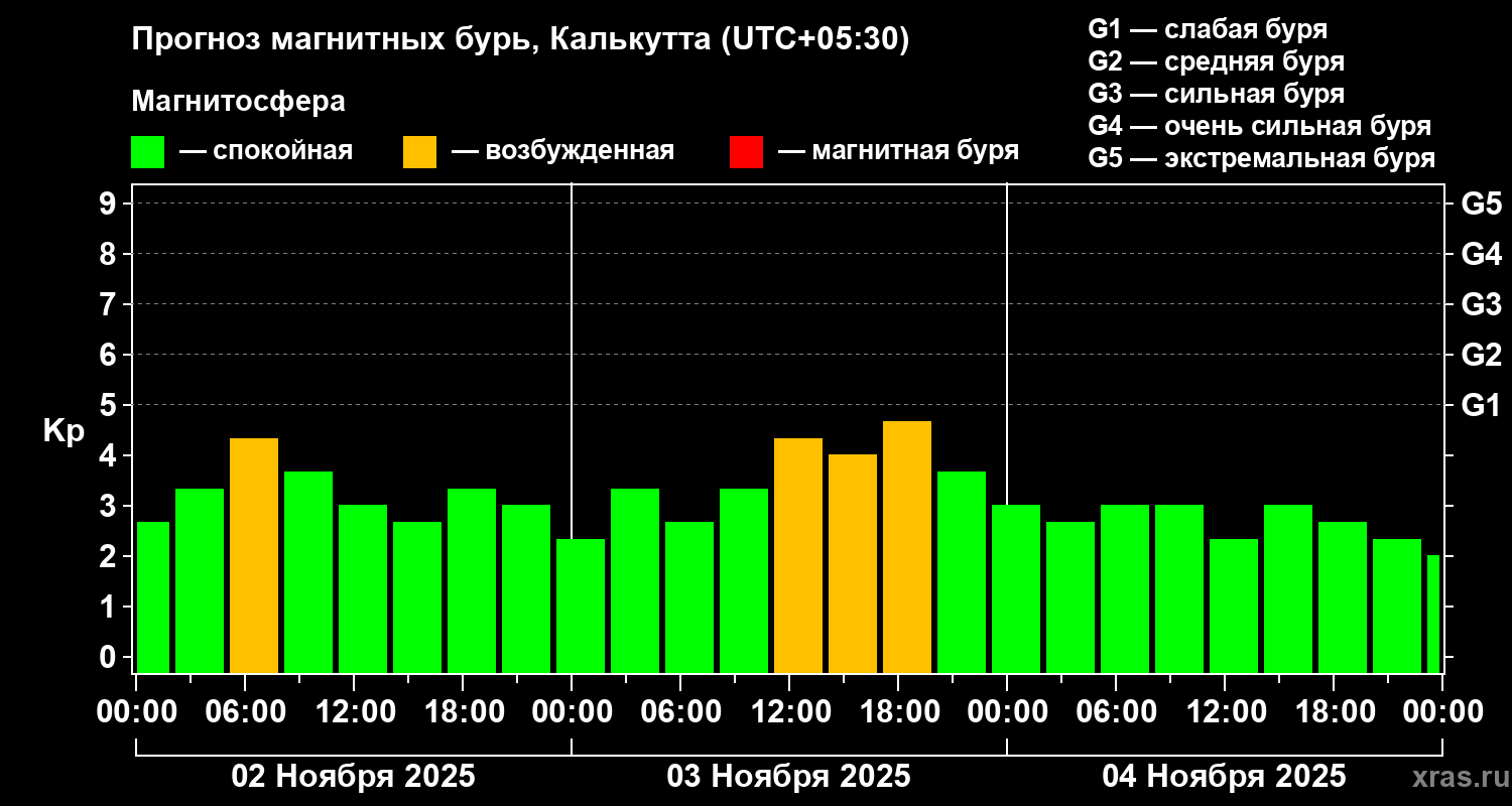 Прогноз магнитных бурь в Калькутте — 2 ноября 2025 года