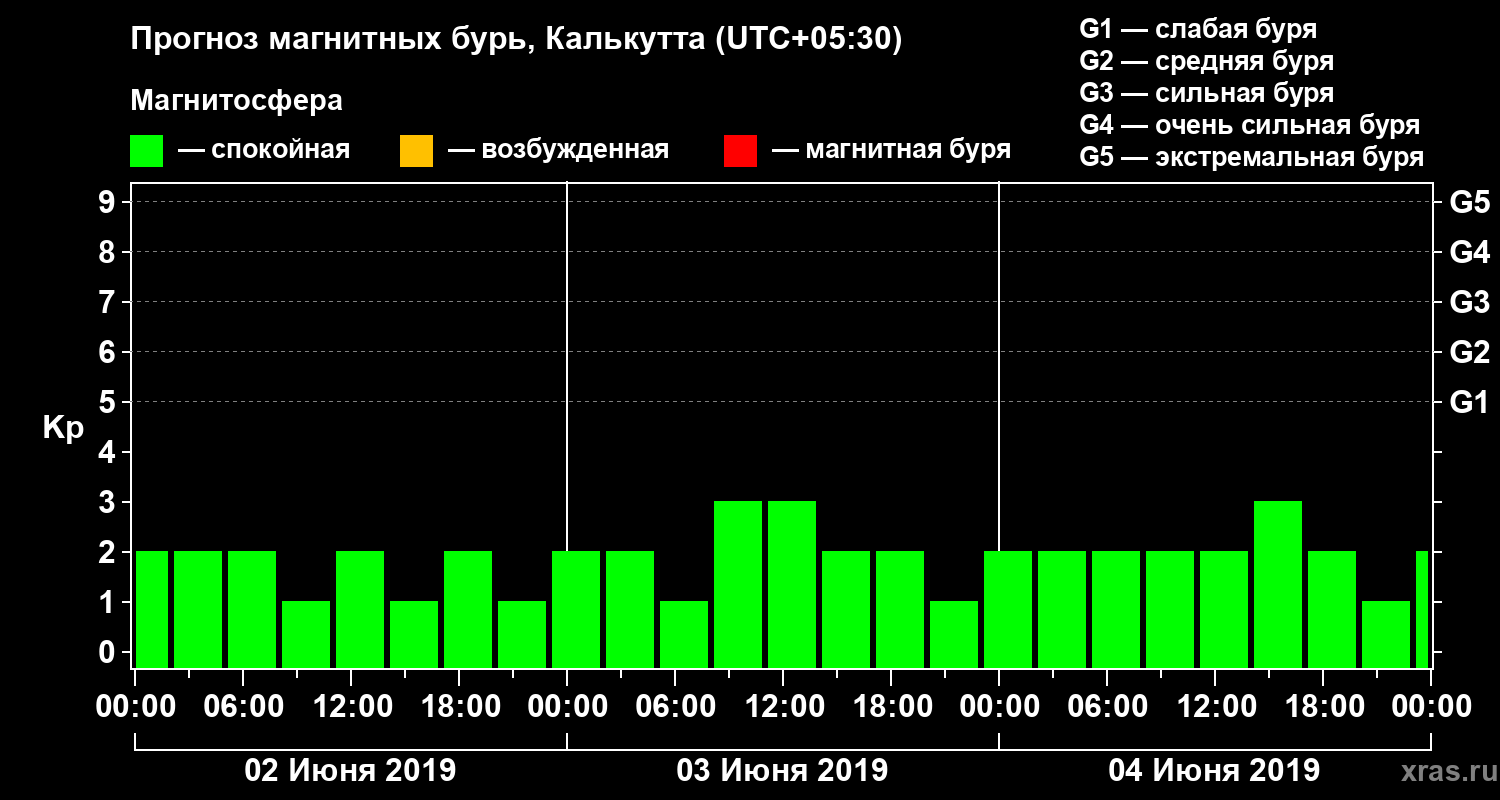 Прогноз магнитных бурь в Калькутте — 2 июня 2019 года