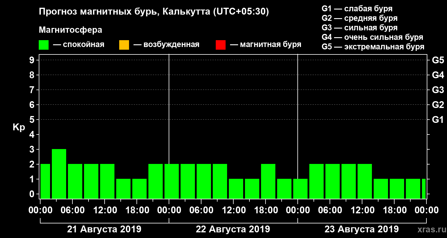 Прогноз магнитных бурь в Калькутте — 21 августа 2019 года