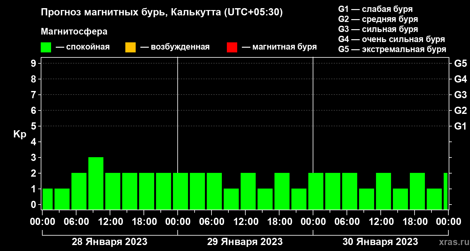 Прогноз магнитных бурь в Калькутте — 28 января 2023 года