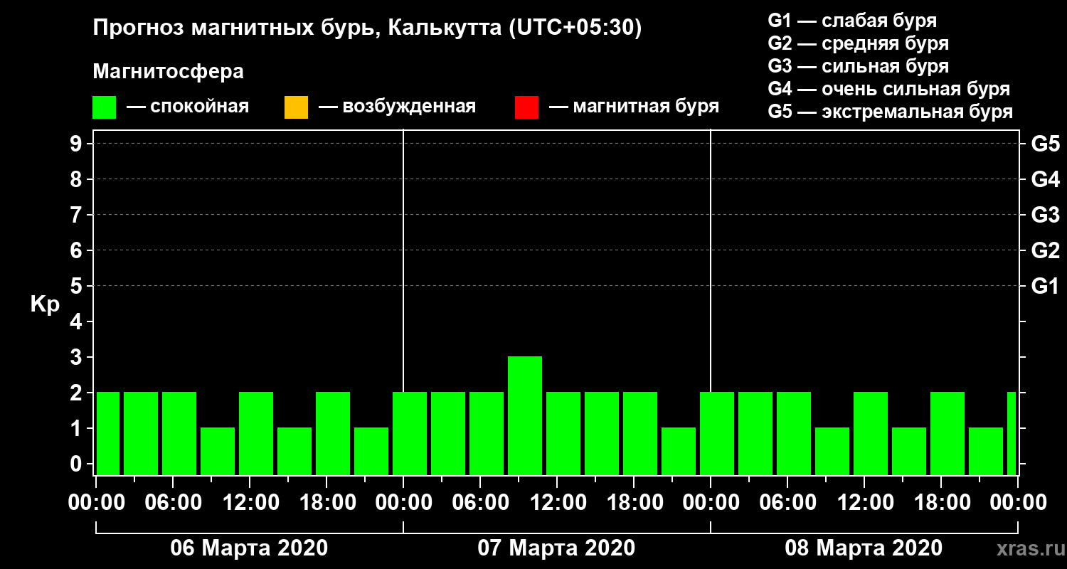 Прогноз магнитных бурь в Калькутте — 6 марта 2020 года