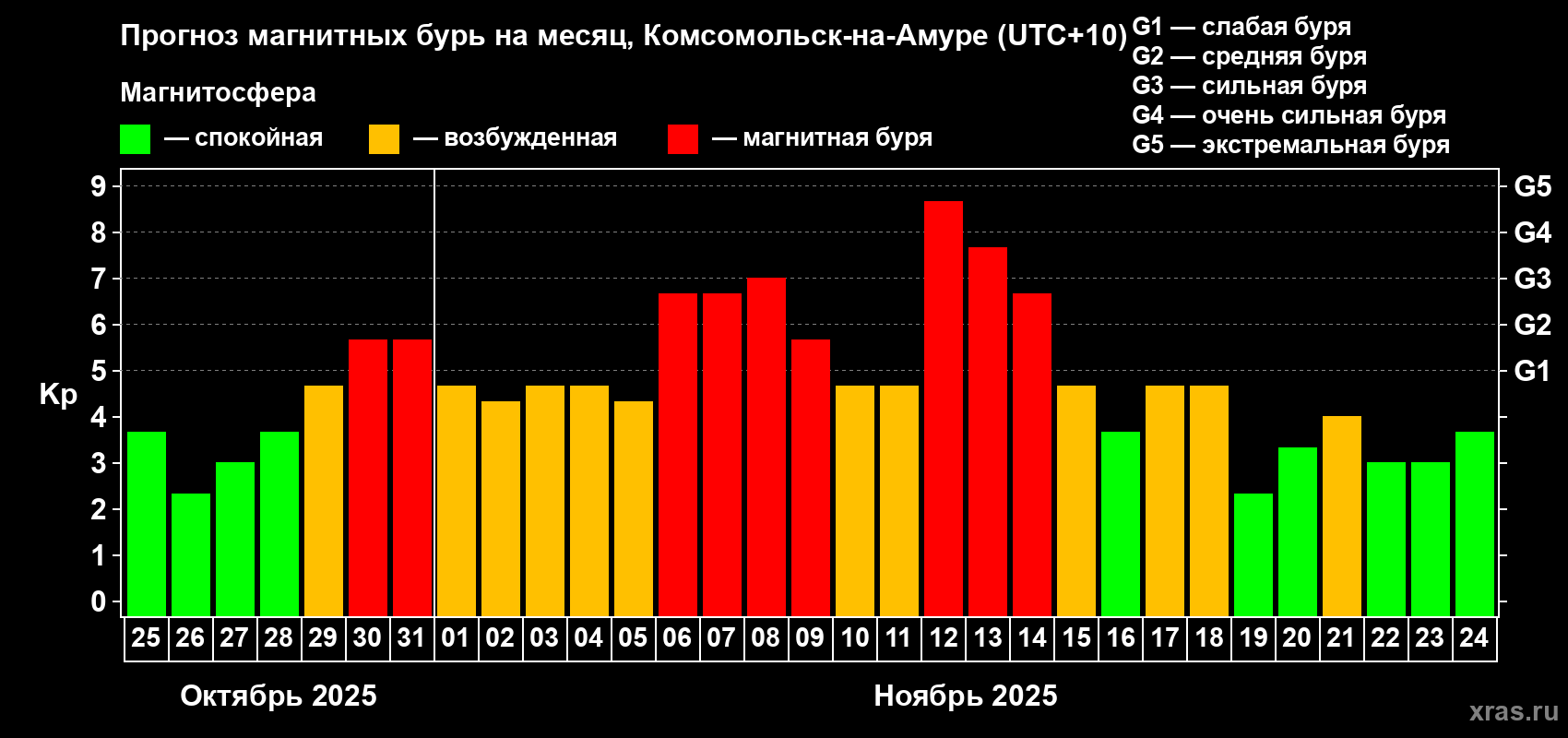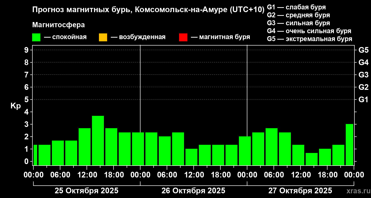 Прогноз магнитных бурь в Комсомольск-на-Амуре — 25 октября 2025 года