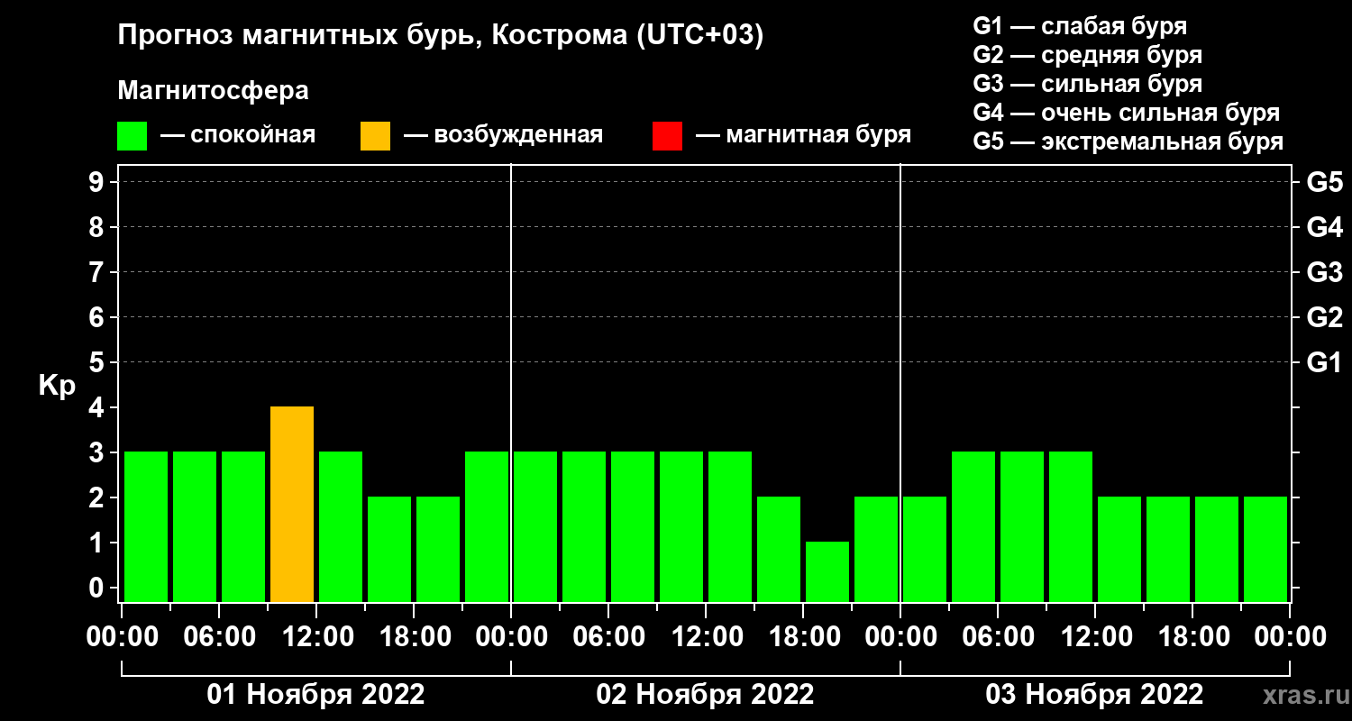 Прогноз магнитных бурь в Костроме — 1 ноября 2022 года