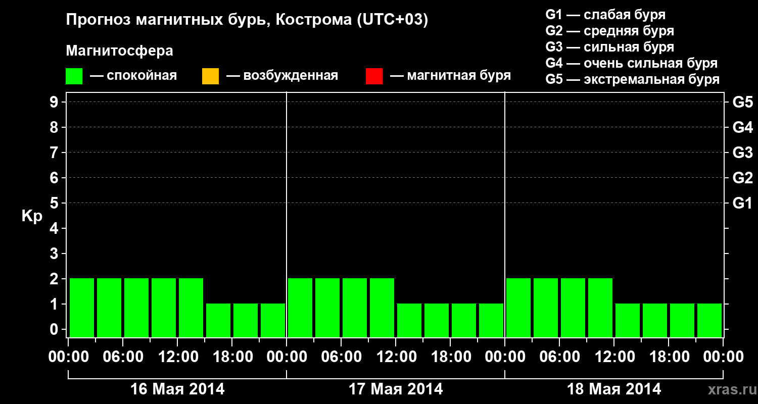 Прогноз магнитных бурь в Костроме — 16 мая 2014 года