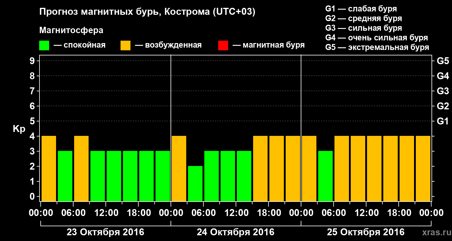 Прогноз магнитных бурь в Костроме на 23 октября 2016 года