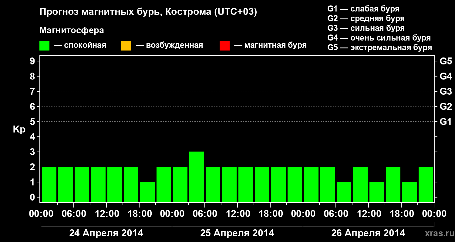 Прогноз магнитных бурь в Костроме — 24 апреля 2014 года