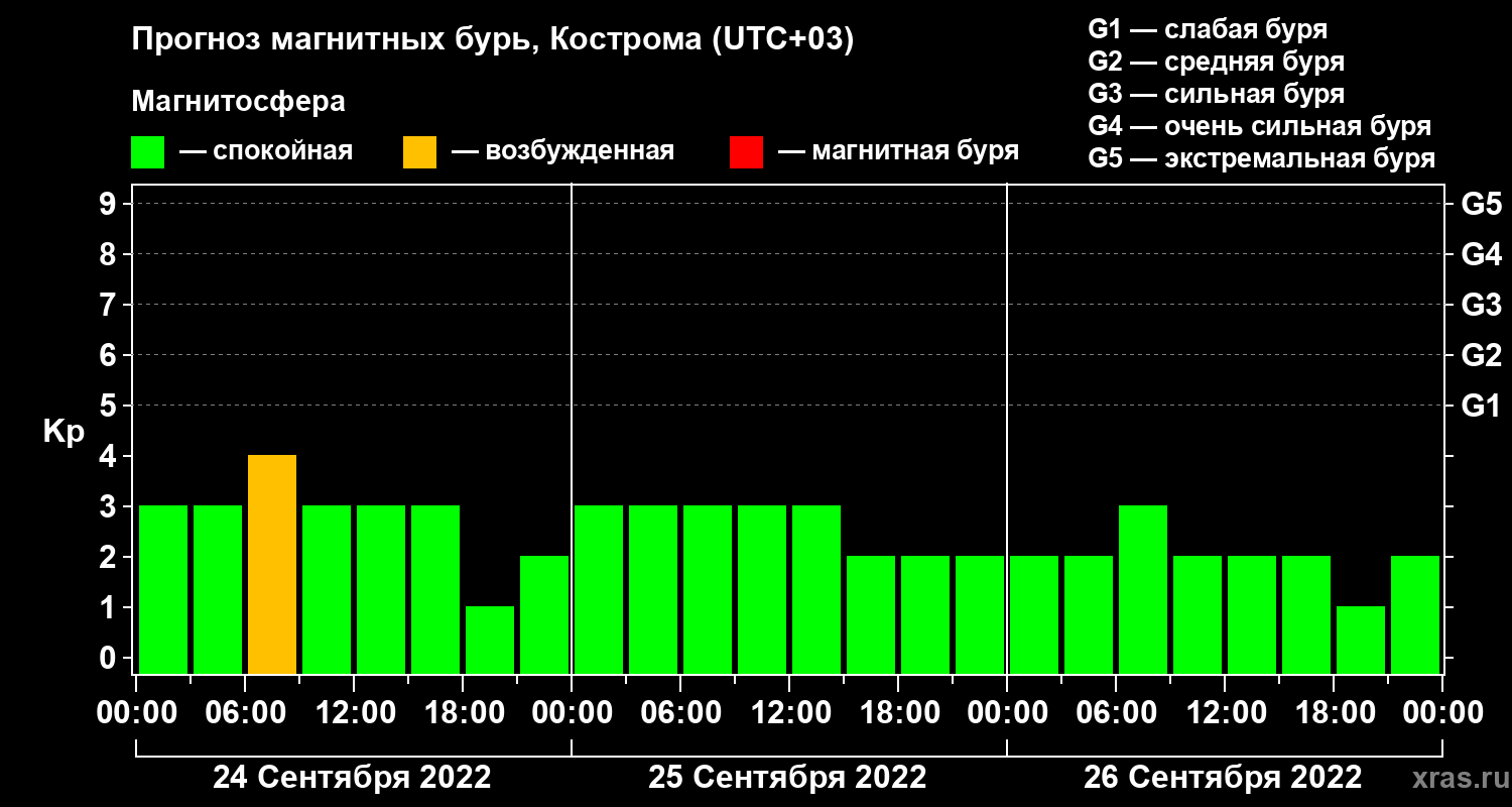 Прогноз магнитных бурь в Костроме на 24 сентября 2022 года