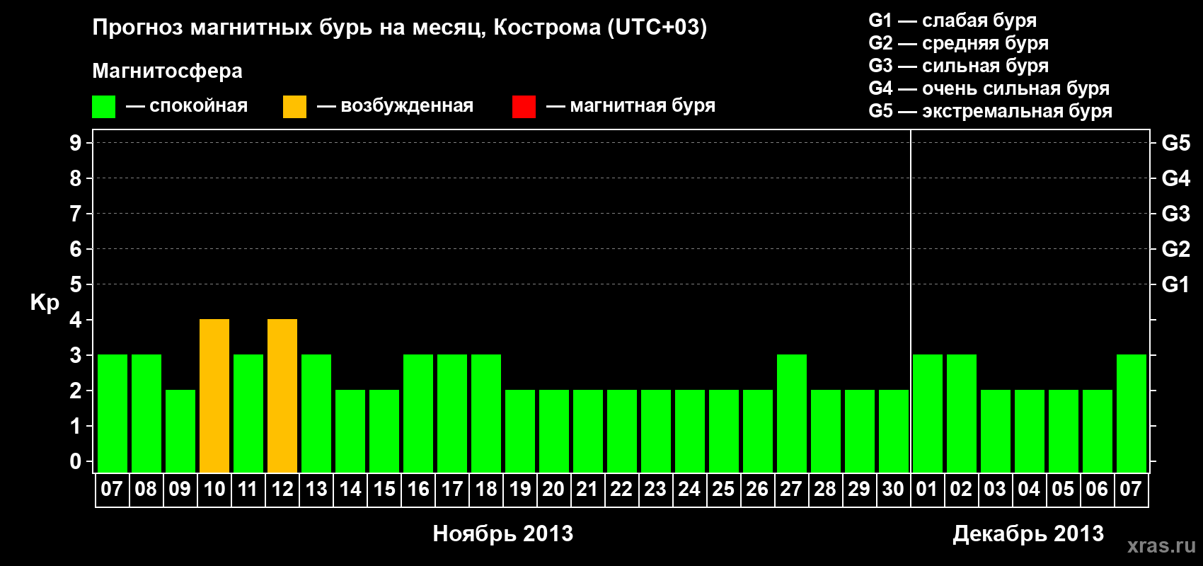 Прогноз магнитных бурь в Костроме — 7 ноября 2013 года