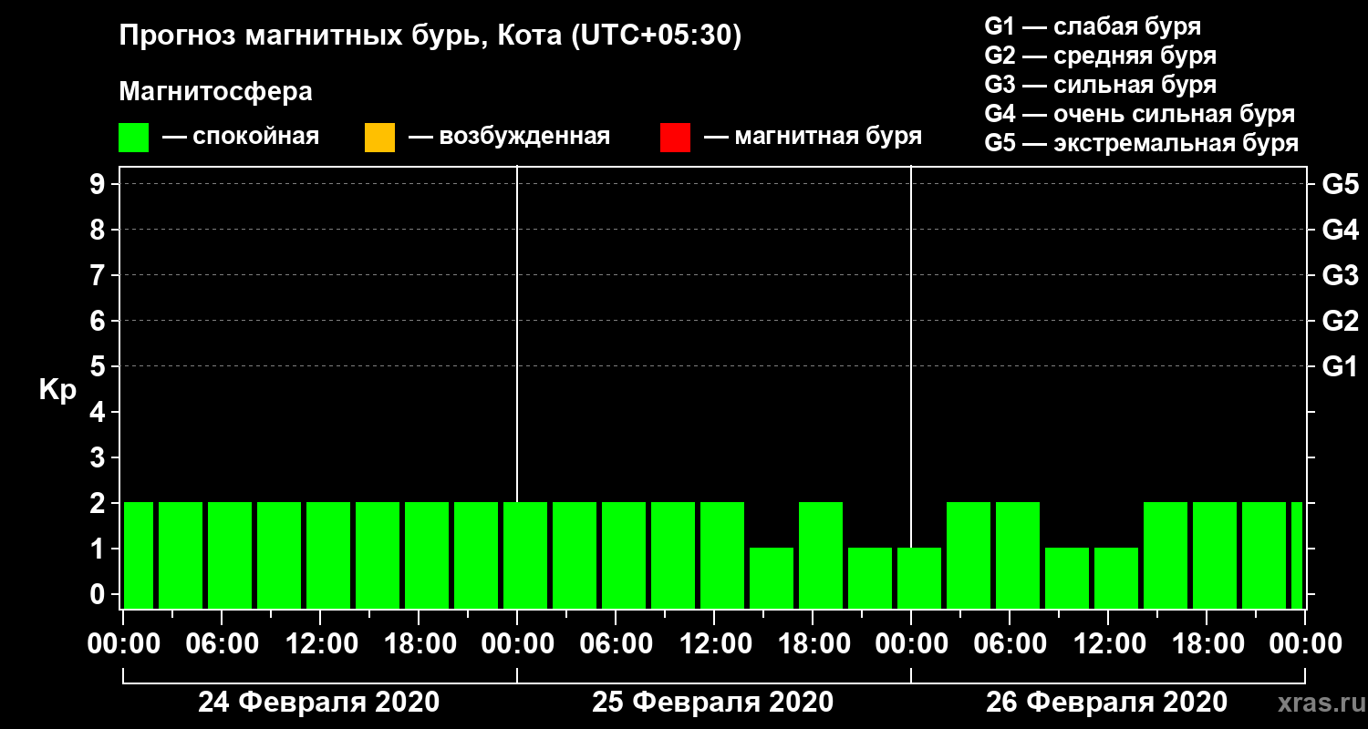 Прогноз магнитных бурь в Коте — 24 февраля 2020 года