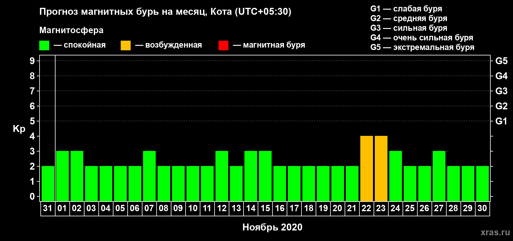 Прогноз магнитных бурь в Коте — 31 октября 2020 года