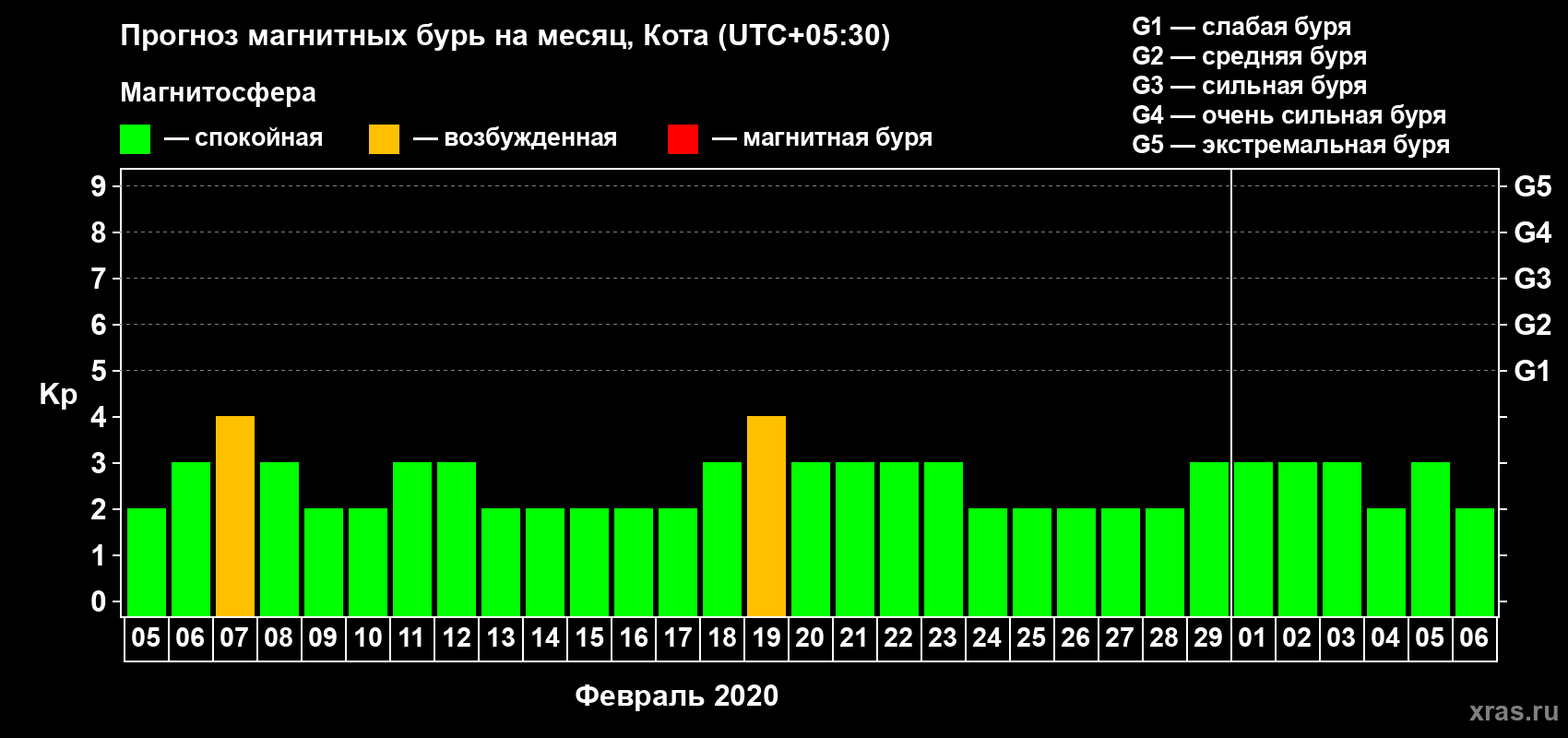 Прогноз магнитных бурь в Коте — 5 февраля 2020 года