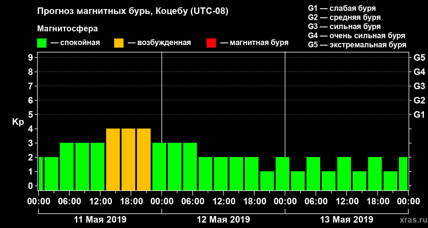 Прогноз магнитных бурь Коцебу — 11 мая 2019 года