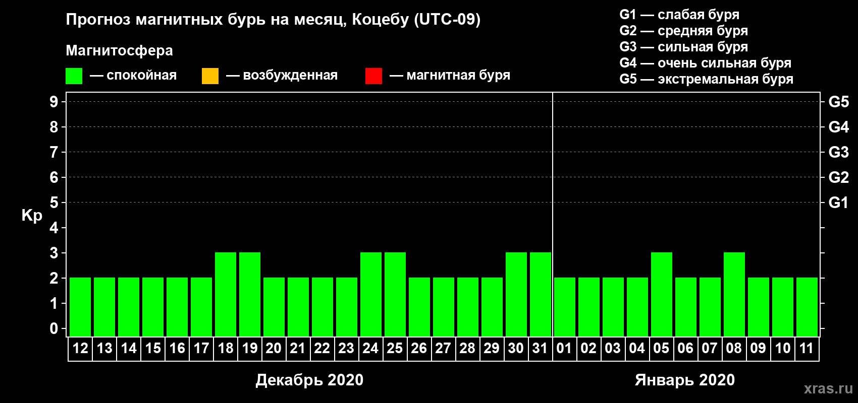 Прогноз магнитных бурь Коцебу на 12 декабря 2019 года