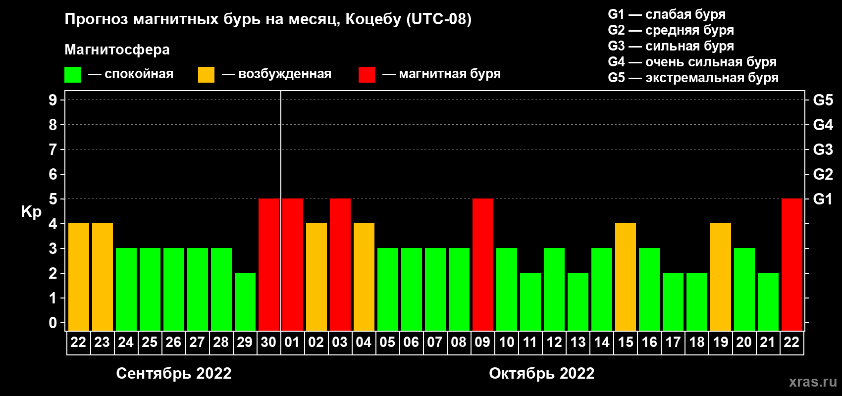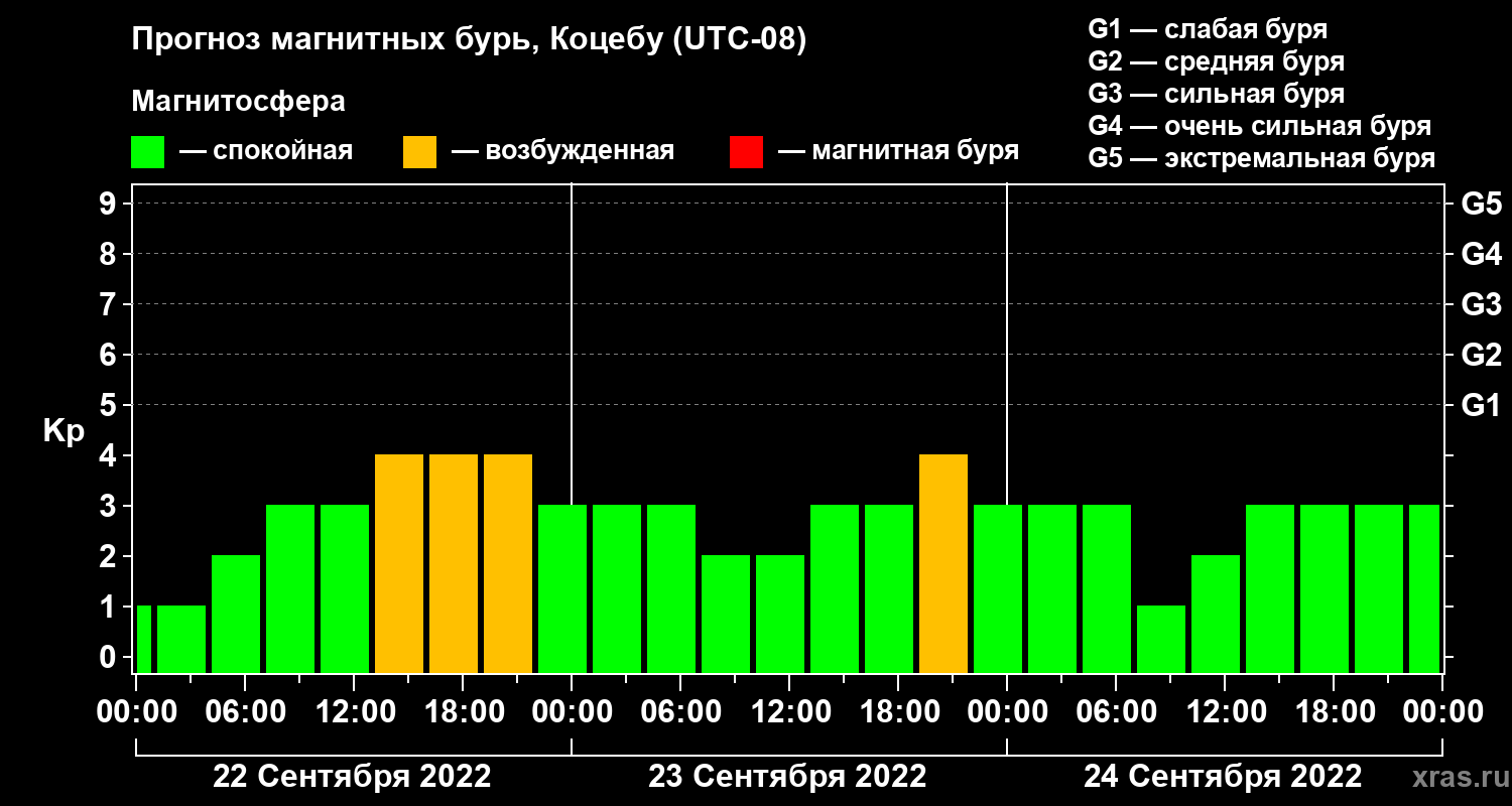 Прогноз магнитных бурь Коцебу — 22 сентября 2022 года