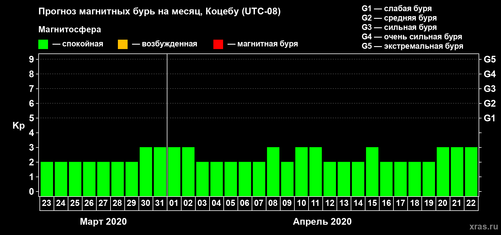 Прогноз магнитных бурь Коцебу — 23 марта 2020 года