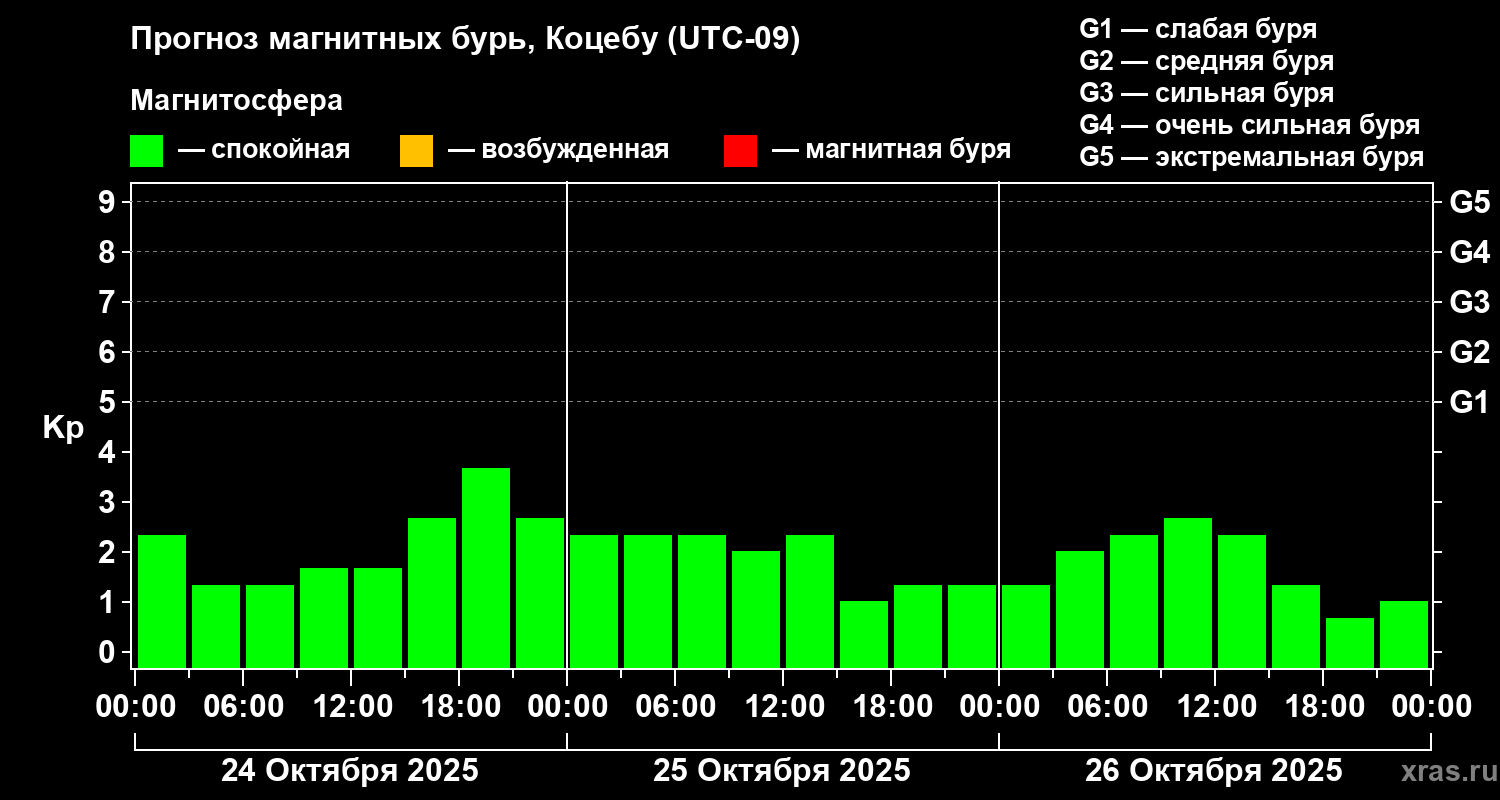 Прогноз магнитных бурь Коцебу на 24 октября 2025 года
