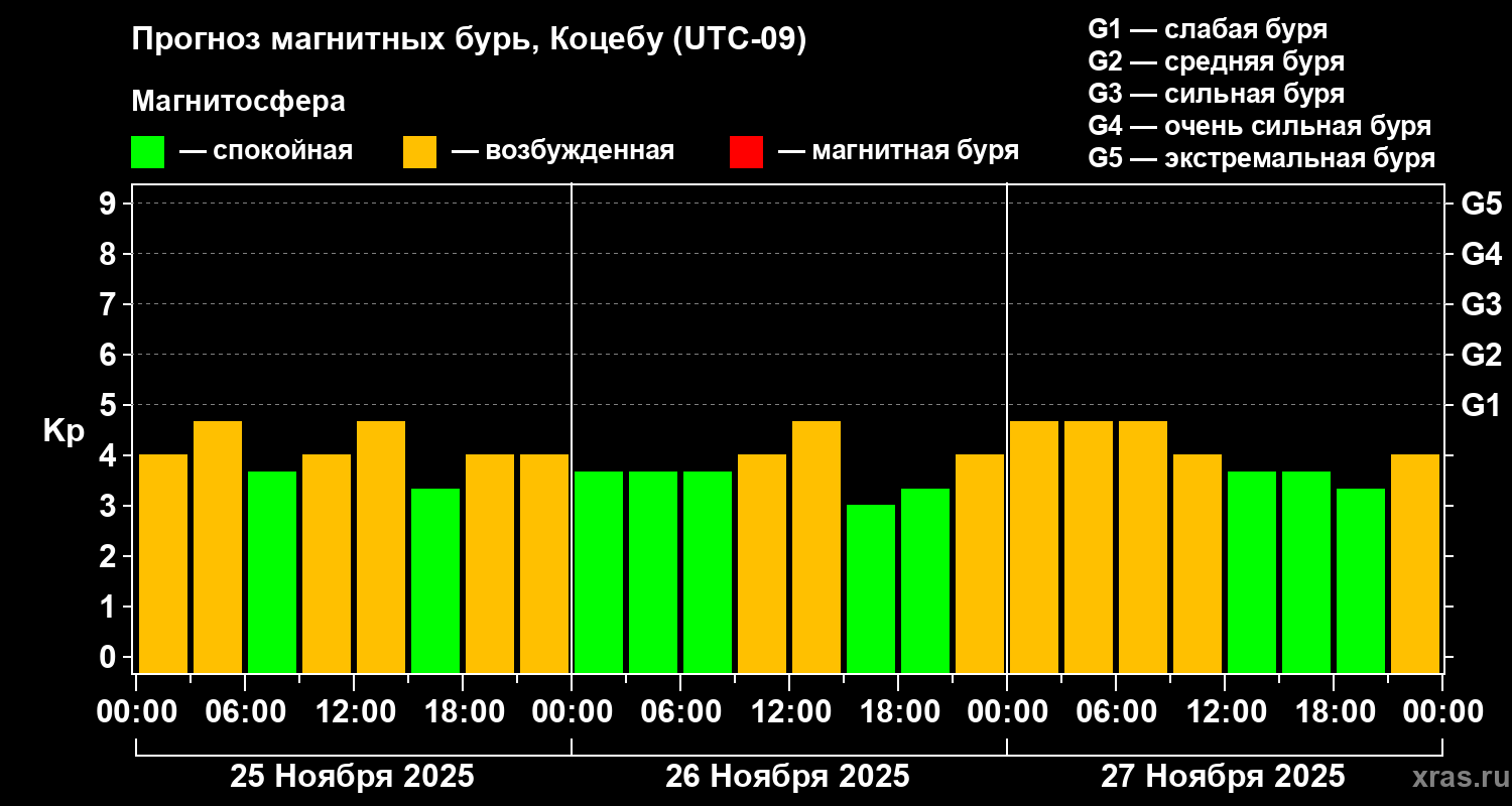 Прогноз магнитных бурь Коцебу — 25 ноября 2025 года