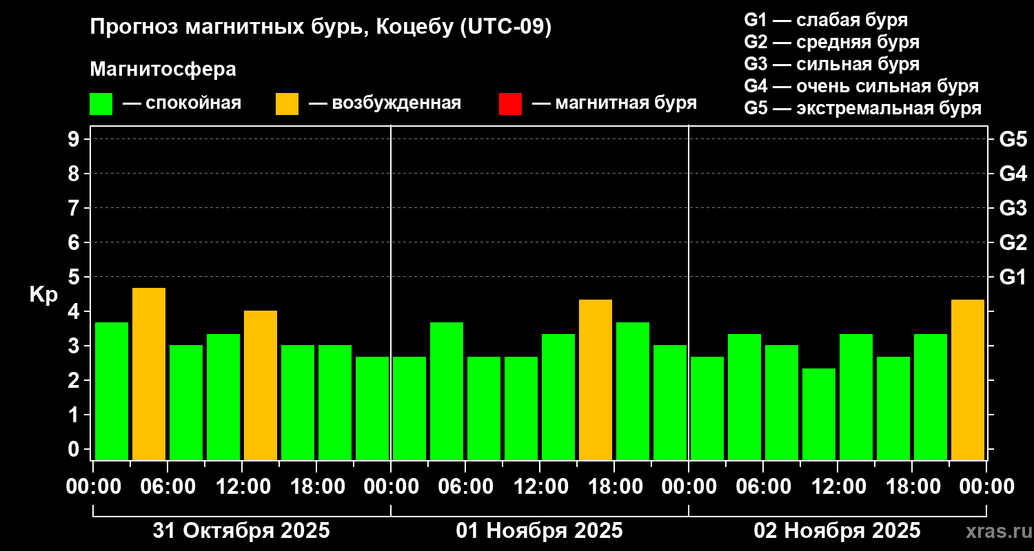 Прогноз магнитных бурь Коцебу — 31 октября 2025 года