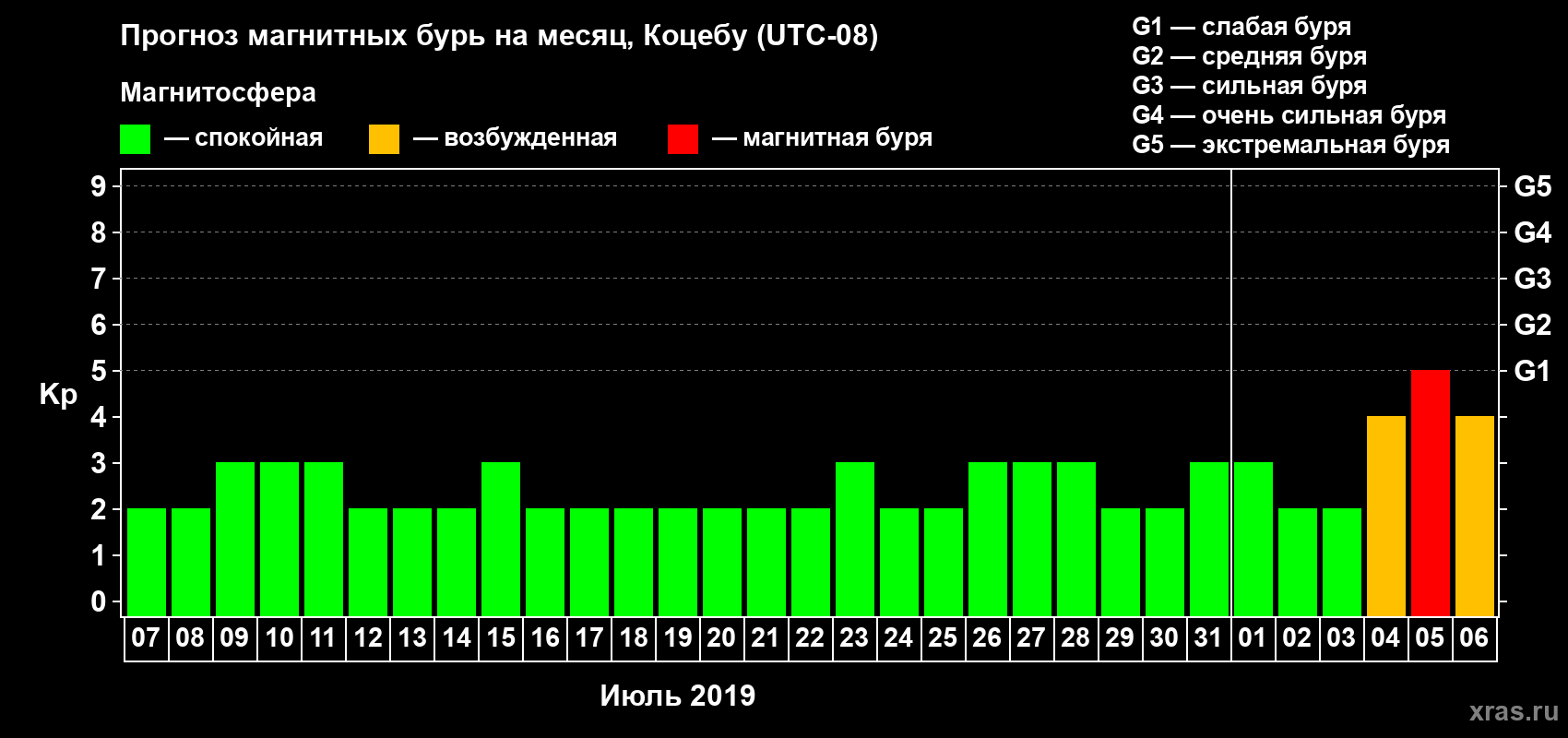 Прогноз магнитных бурь Коцебу — 7 июля 2019 года