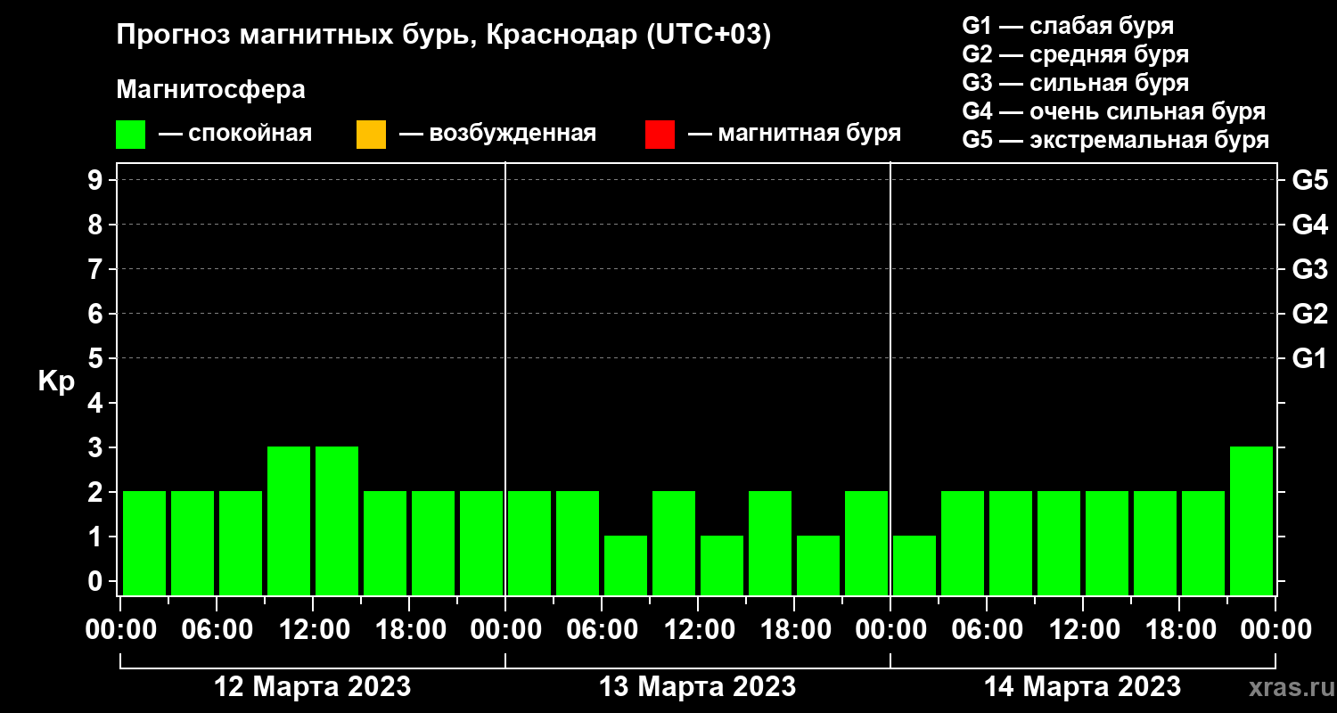 Прогноз магнитных бурь в Краснодаре — 12 марта 2023 года