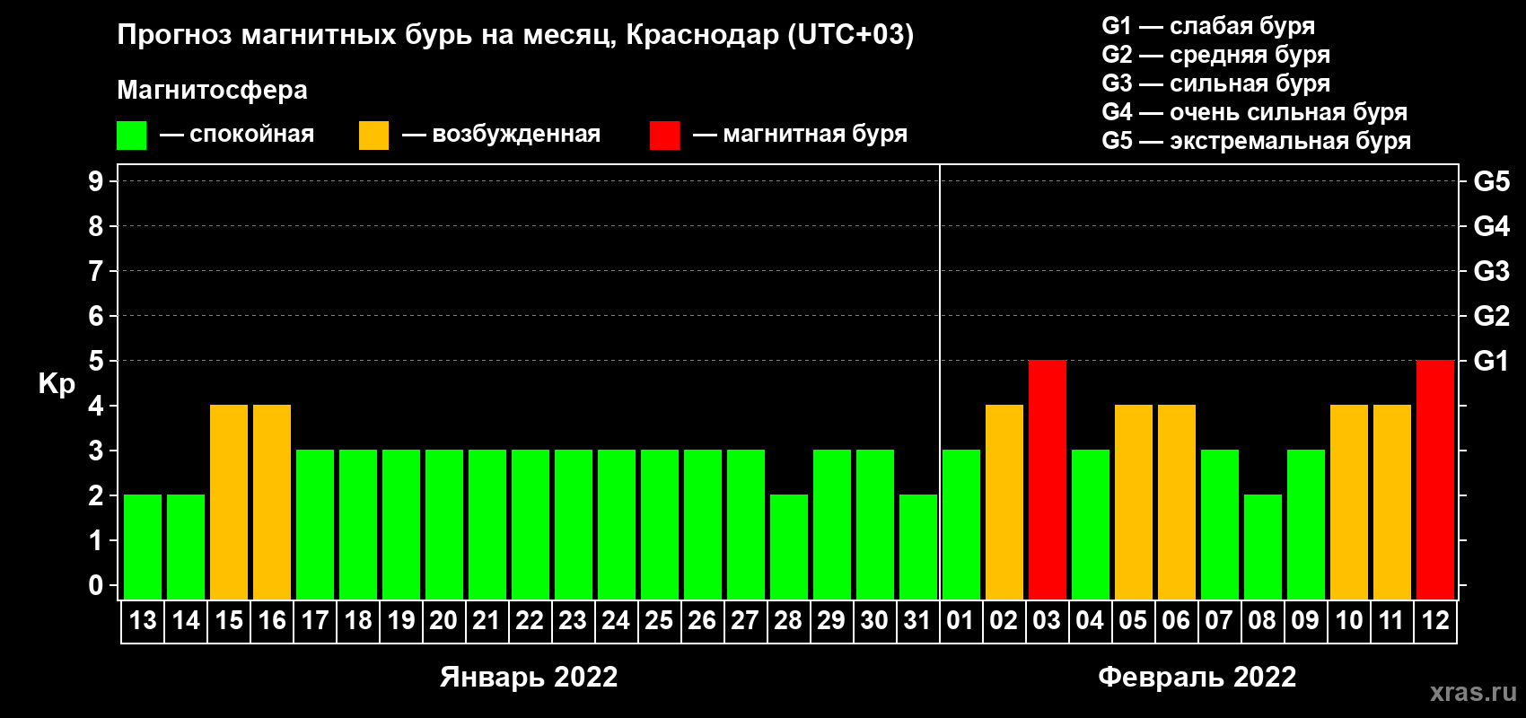 Прогноз магнитных бурь в Краснодаре — 13 января 2022 года