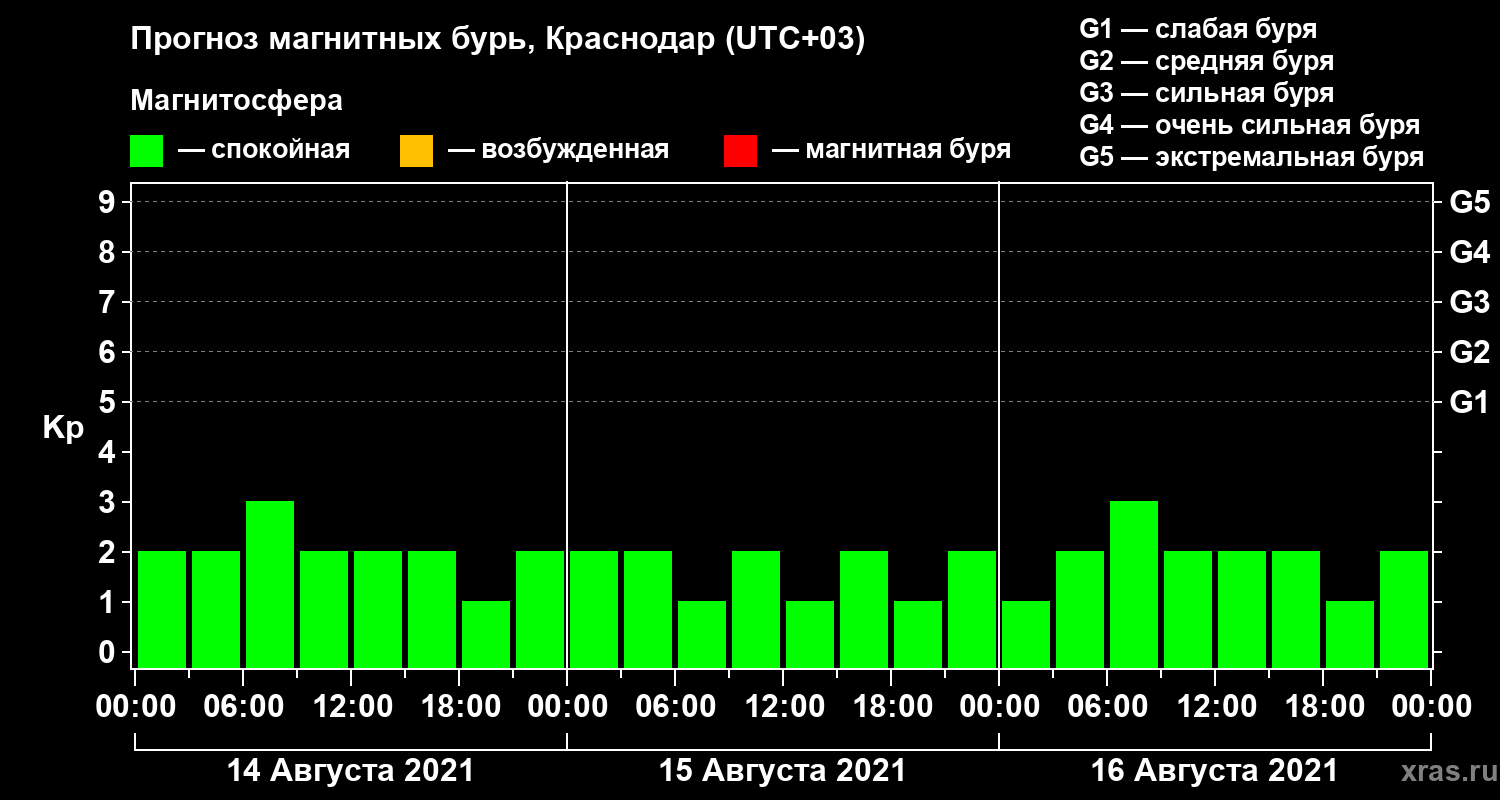 Прогноз магнитных бурь в Краснодаре на 14 августа 2021 года