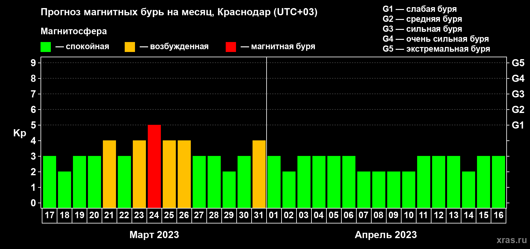 Прогноз магнитных бурь в Краснодаре — 17 марта 2023 года