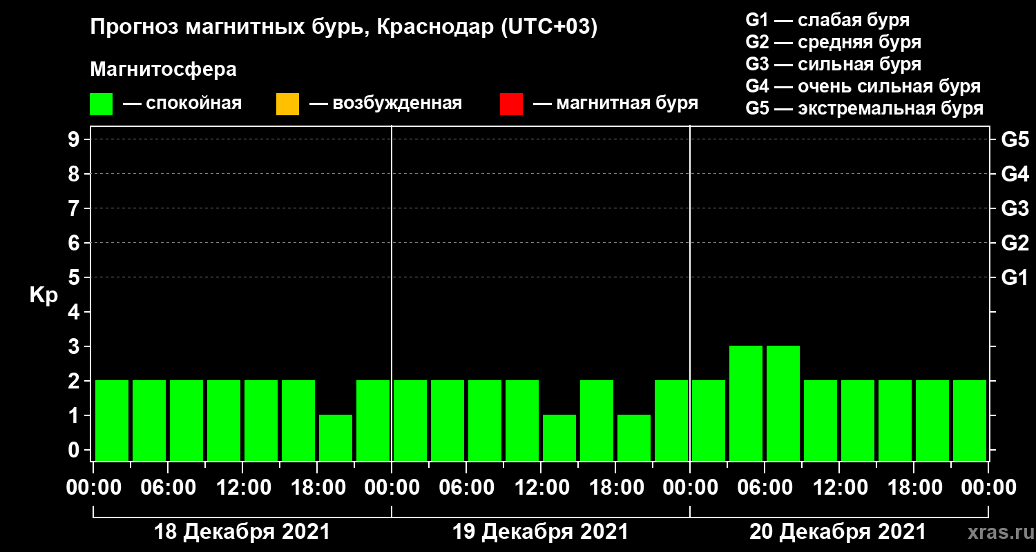 Прогноз магнитных бурь в Краснодаре — 18 декабря 2021 года