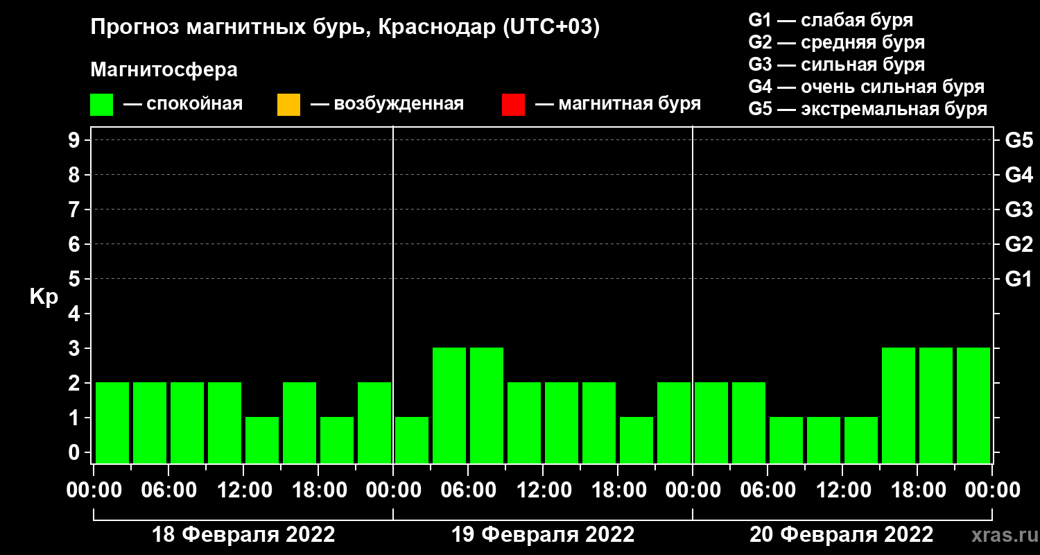 Прогноз магнитных бурь в Краснодаре — 18 февраля 2022 года