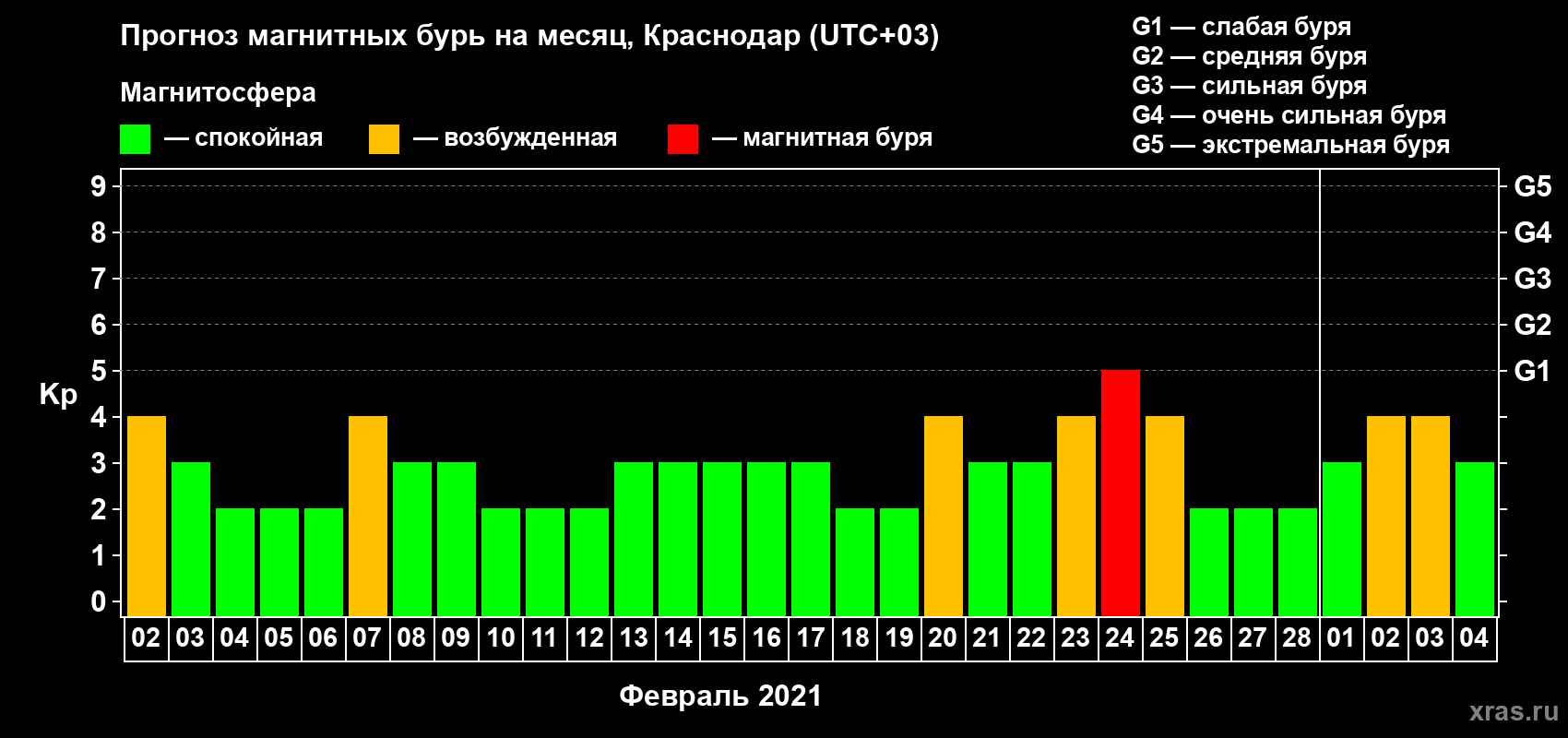 Прогноз магнитных бурь в Краснодаре — 2 февраля 2021 года